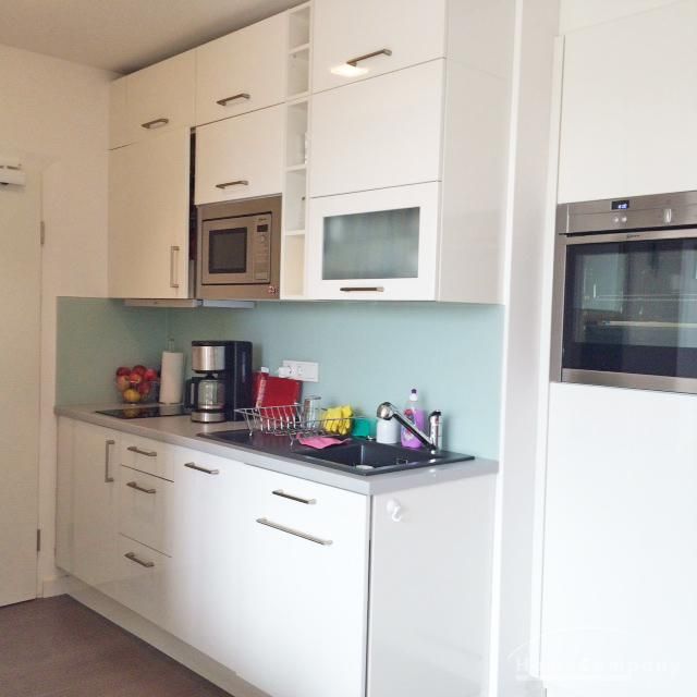 Tolles neu möbliertes 1-Zimmer-Apartment mit Balkon Nahe Münchner Freiheit. Absolut zentrale Lage, doch ruhig zum Innenhof gelegen. 6. Stock mit Lift. Der Wohn-/Schlafraum verfügt über ein Doppelbett (1,5 x 2 m), welches unauffällig in einer modernen weißen Schrankwand untergebracht ist, ein bequemes Sofa, einen Sessel sowie einen kleinen Ess-Arbeitsplatz. Die moderne weiße offene Küche ist hochwertig mit allem ausgestattet (Cerankochfeld, Spülmaschine, Mikrowelle etc.), was man täglich benötigt. Weißes Bad mit Glasdusche und Tageslicht. Internet vorhanden. Ebenso befindet sich eine Wasch/Trockenkombi in der Wohnung. Bodenbelag: schöner dunkler Parkettboden