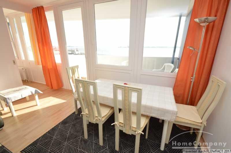 Die Wohnung liegt in der 8 Etage einer größeren Wohneinheit im Herzen Bremerhavens. Die Loggia ist zur Wasserseite ausgerichtet und ermöglichen einen fantastischen Ausblick auf die Havenwelten und die Weser. Am Abend kann man von hieraus auch den beeindruckenden Sonnenuntergang genießen. Die Wohnung selbst überzeugt durch die hohe Qualität der Austattung und die Liebe zum Detail. Alle Räume sind vom Flur aus zu begehen. Das Wohnzimmer besteht aus einem Essbereich und einer gemütlichen Sitzecke zum Entspannen. Die moderne Küche ist voll ausgestattet. Das Schlafzimmer ist mit einem 180cm Doppelbett und einem großzügigen Kleiderschrank ausgestattet. Auch hier kann man den einmaligen Ausblick genießen. Die Miete gilt für 1 Person. Bei 2 Personen erhöht sich die Miete um 100,00€.