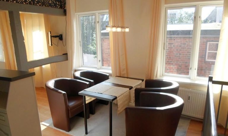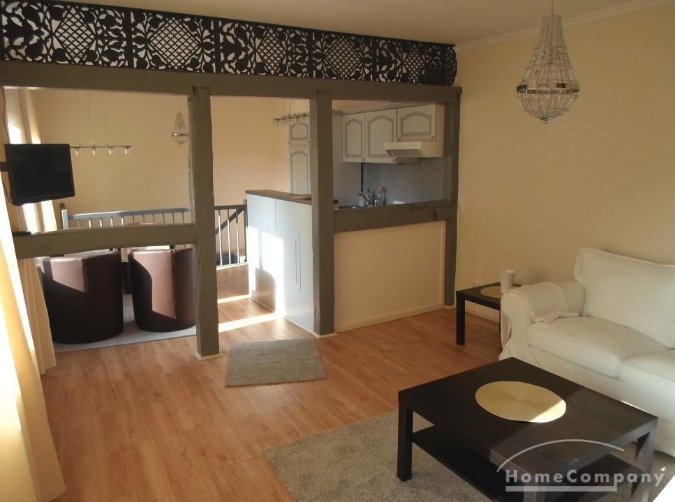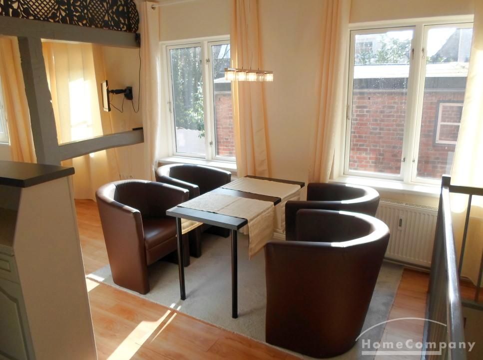 Schöne 2-Zimmer-Wohnung in einem historischen Lübecker Altstadthaus über zwei Etagen, Eingang von der Hofseite. Das Objekt ist komplett möbliert und verfügt über ein Duschbad und eine offene Einbauküche mit Geschirrspüler. Im Erdgeschoß befinden sich Schlafzimmer und Bad, im Obergeschoß die offene Küche, die Essecke und das Wohnzimmer.