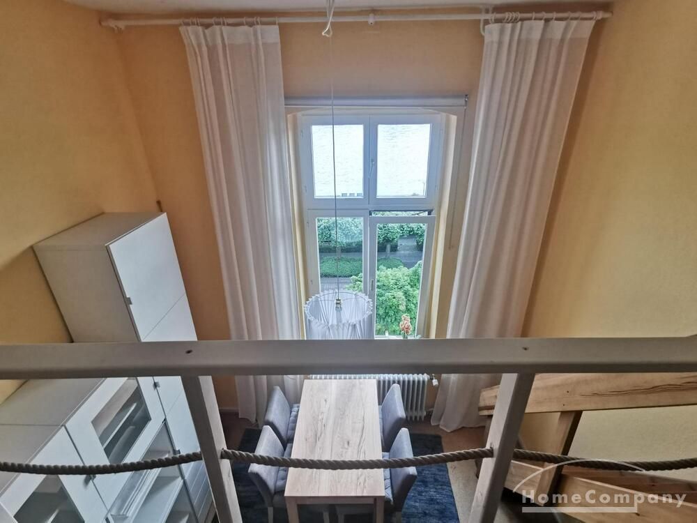 Die voll möblierte 50qm Wohnung befindet sich in zentraler Lage von Königswinter, direkt am Rhein, in einer geschmackvoll renovierten Altbauvilla mit künstlerischem Flair.