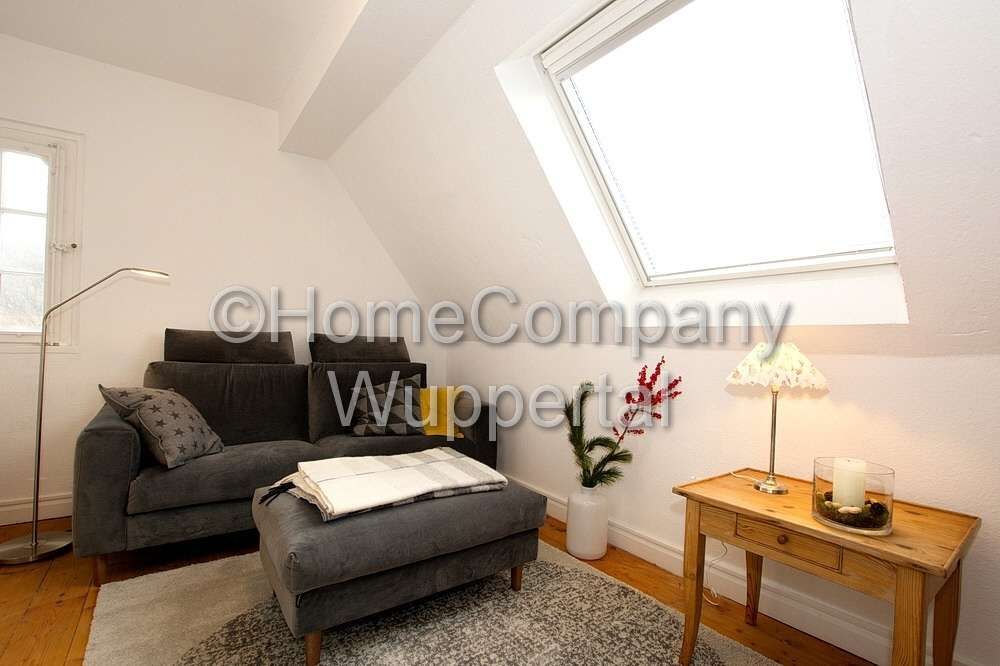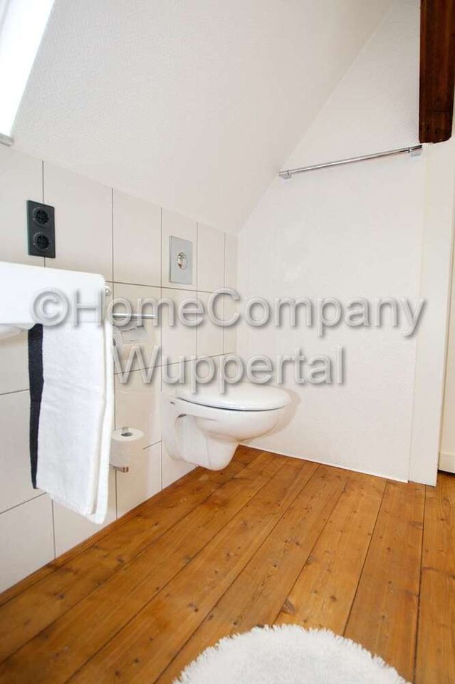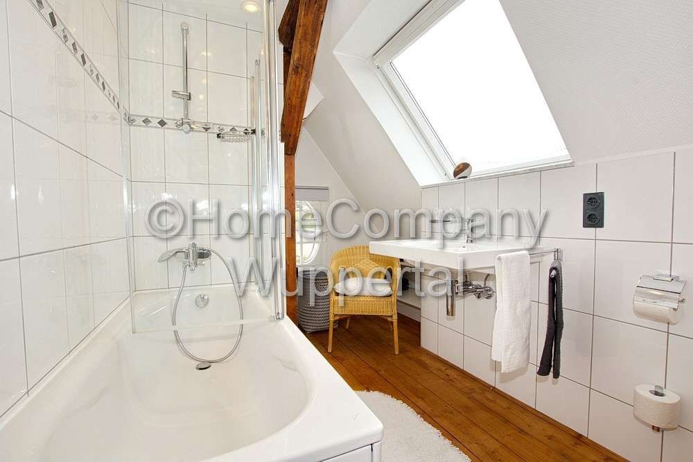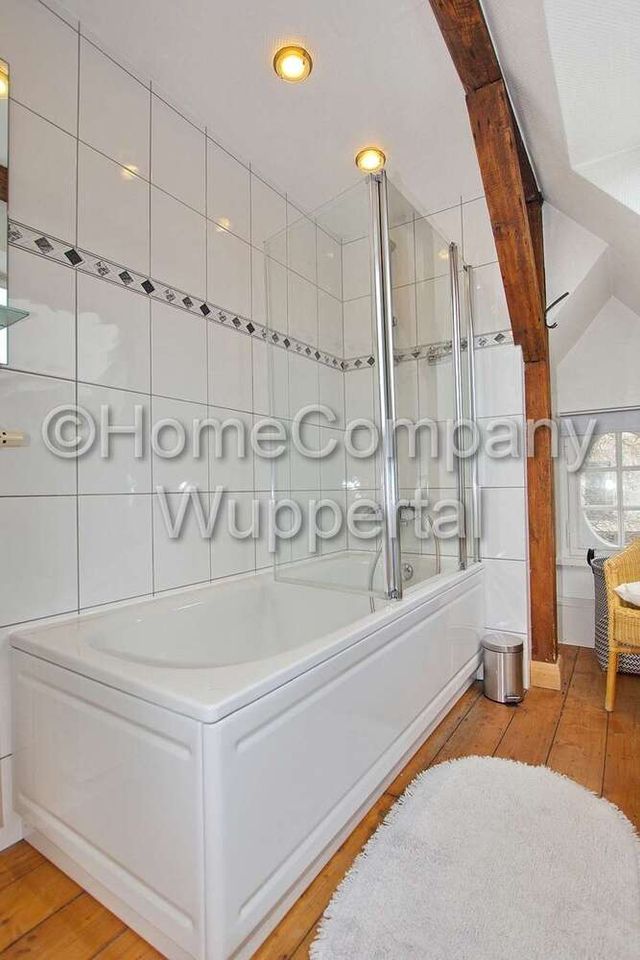 Traumhaft schöne Dachgeschosswohnung in einem sehr gepflegten Bergischen Fachwerkhaus in gehobener Lage. Beste Parkmöglichkeiten befinden sich direkt am Haus. Geschäfte des täglichen Bedarfs sind in wenigen Minuten zu Fuß erreichbar. Die Innenstädte von Wuppertal und Remscheid erreicht man in ca. 15 Minuten mit dem PKW. Die Barmer Krankenkasse und das Technologiezentrum mit der Deutschland-Zentrale von Aptiv liegen ca. 12 Minuten entfernt, die Bergische Universität erreicht man in 13 Minuten mit dem PKW. Mit öffentlichen Verkehrsmitteln erreicht man diese Ziele in ca. 30 – 35 Minuten. Hier wohnt man in ruhiger Stadtrandlage und ist dennoch schnell am Arbeitsplatz. Es handelt sich um eine Nichtraucherwohnung. Angaben zum Energieausweis nach § 16a EnEV 2014:
