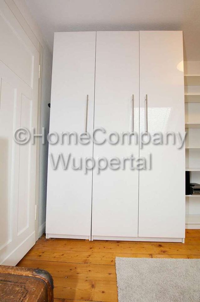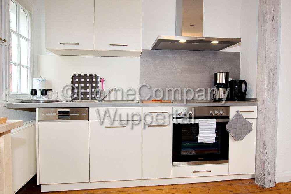 Die gesamte Wohnung ist mit Originaldielenböden ausgelegt, die alten Holztüren wurden erhalten und frisch weiß lackiert. Sie bietet Ihnen das besondere Flair der bergischen Bautradition, gepaart mit modernen Elementen. Das Wohnzimmer ist mit einem grauen Sofa mit Beistelltisch und einem Kleiderschrank eingerichtet, auf einem alten Überseekoffer steht das Smart-TV mit SAT-Empfang. Im schön dekorierten Schlafzimmer stehen ein Doppelbett in der Größe 1,40 x 2,00 m, eine moderne weiße Kommode und ein Rattan-Stuhl. Die separate Küche lässt keine Wünsche offen: neue Einbauküche mit Ceranfeld, Backofen und Dunstesse, eine Spülmaschine und eine Kühlgefrierkombination, außerdem alle erforderlichen Kochutensilien und Geschirr stehen hier zur Verfügung. Es gibt einen Esstisch für bis zu vier Personen. Das geräumige Tageslichtbad ist mit einer Badewanne mit Duschabtrennung, einem Hänge-WC und einem modernen Waschtisch ausgestattet. Bettwäsche und Handtücher werden gestellt. Eine Waschmaschine und ein Trockner zur Mitbenutzung stehen im Kellergeschoss bereit. Der Garten darf nach Absprache mitgenutzt werden. Die Miete beträgt € 760,00 für eine Person inklusive aller Energie- und Nebenkosten, der Nutzung des Internetzugangs und eines PKW-Stellplatzes. Der Mietpreis für 2 Personen liegt bei € 910,00. Die Endreinigung zahlt der Mieter. Sie erfolgt nach Aufwand und wird mit derzeit € 35,00 pro Stunde abgerechnet.