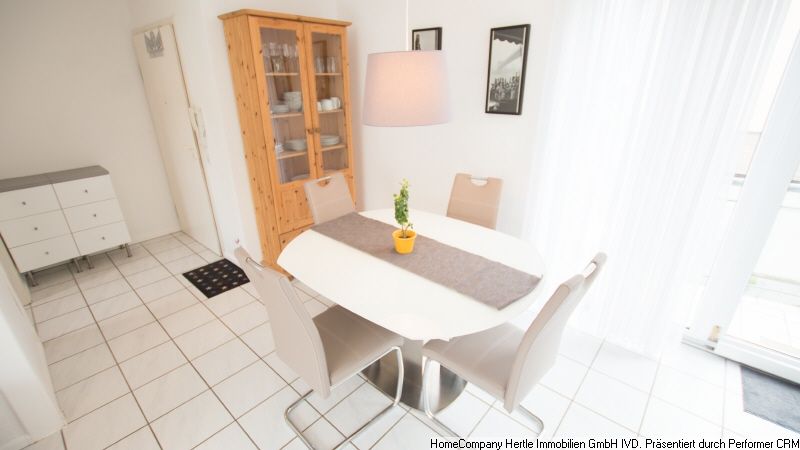 Aufgeteilt in einen Eingangsbereich, Wohn- und Esszimmer mit gemütlichem Balkon (Südausrichtung mit Markise),