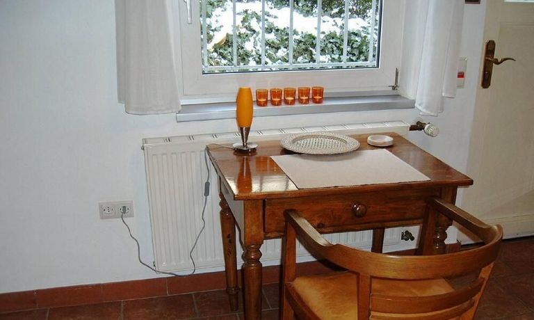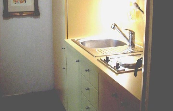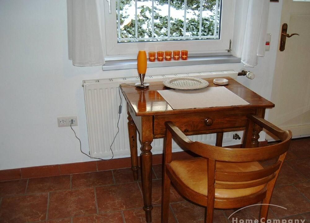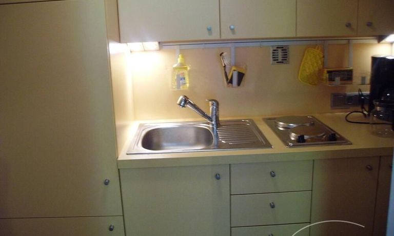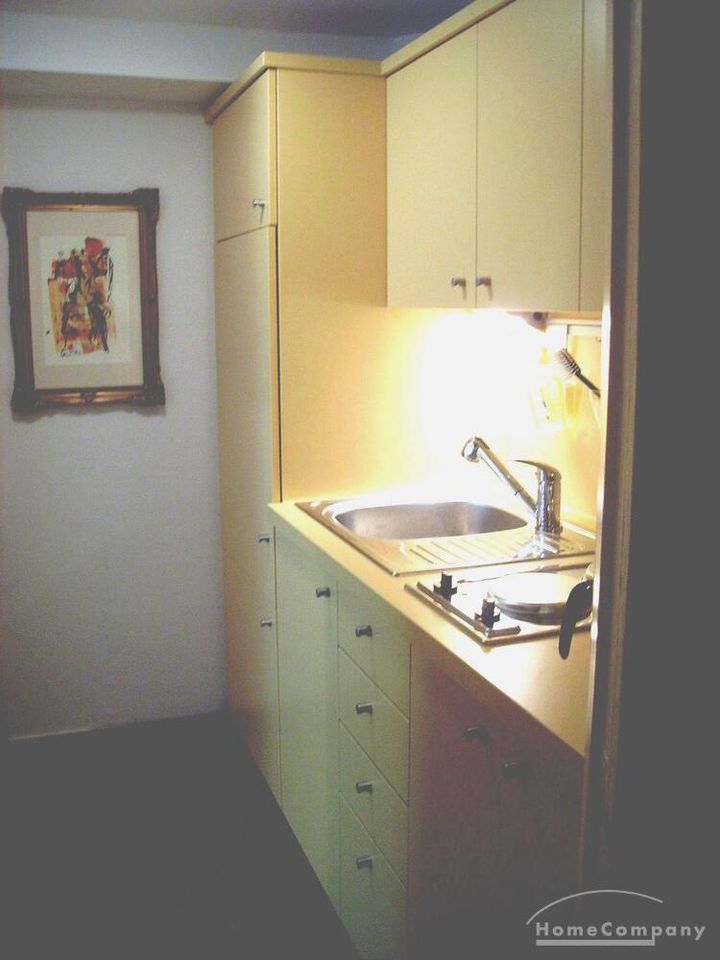 In der Pantryküche sind Waschmaschine, Mikrowelle, Wasserkocher, Kaffeemaschine und alltägliche Utensilien (Besteck/Geschirr etc.) vorhanden. Außerdem ist das Apartment mit einem Esstisch, einem Fernsehgerät sowie einem gemütlichen Einzelbett ausgestattet.