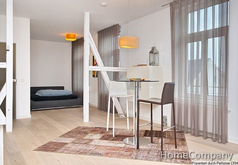 Suchen Sie das Außergewöhnliche, bitte sehr! Dieses offen gestaltete Apartment wird Ihren hohen Ansprüchen an Qualität und Komfort absolut gerecht. Der Kochbereich ist mit einer hochwertigen Einbauzeile inklusive Spülmaschine und Kaffeevollautomat ausgestattet, natürlich stehen Ihnen auch Geschirr und Küchenutensilien zur Verfügung. Der Esstisch bietet Platz für 3 Personen. Der Wohnbereich ist mit einem gemütlichen Sofa und LCD-TV eingerichtet. Die Schlafnische beherbergt ein gemütliches Doppelbett und einen geräumigen Kleiderschrank. Das hochwertige Bad ist mit einer ebenerdigen Dusche ausgestattet. Die Miete beträgt 1195 € inklusive 7 % MwSt. für eine Person. Alle Nebenkosten, Highspeed-Internetnutzung, Hausmeisterdienst und der wöchentliche Reinigungsservice sind enthalten, 2 Personen auf Anfrage. Auf Wunsch sind auch Kleiderreinigungs- und Bügeldienst sowie weitere Serviceleistungen buchbar. Die Endreinigung obliegt dem Vermieter, erfolgt nach Aufwand und wird mit 35 € pro Stunde abgerechnet.
