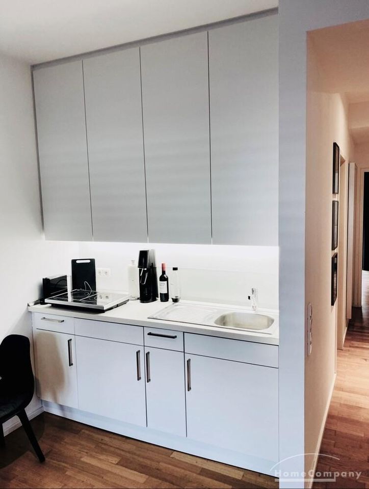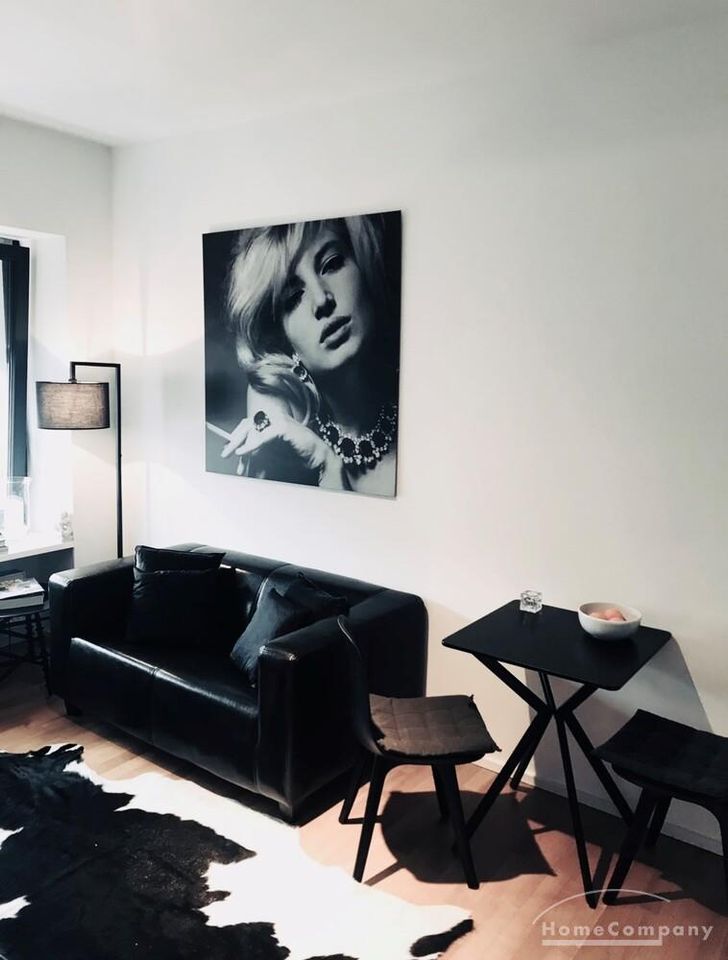 Die 2-Zimmer-Wohnung mit extra hohen Decken und Einbauspots ist hochwertig ausgestattet mit Highspeed W-Lan, elektrischen Jalousien, zwei Flatscreen TV sowie Kamerasystem (Hauseingang). Die Möbel und Einrichtung ist schwarz-weiß gehalten.
