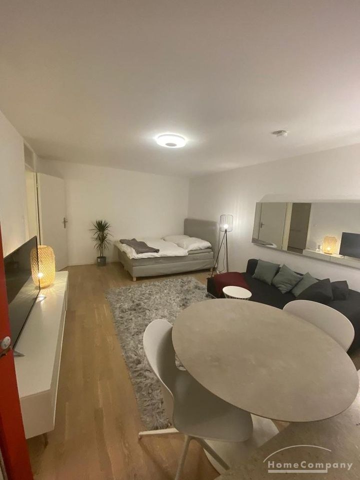 Das Apartment ist sehr hell und freundlich möbliert. Wohn-und Schlafraum mit Essplatz für 2 Personen, Sideboard mit TV Boxspringbett. Von hier Zugang zum Balkon. Die neue, helle Einbauküche verfügbar über alles, was man täglich benötigt, z.B. Cerankochfeld, Backofen und Spülmaschine und eigene Waschmaschine. Modernes Badezimmer mit Badewanne. Im Eingangsbereich ist ein Schrank untergebracht, der ausreichend Stauraum bietet.