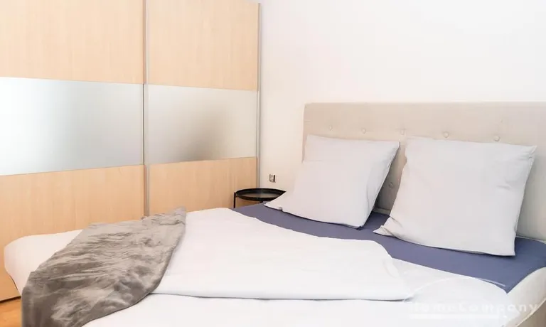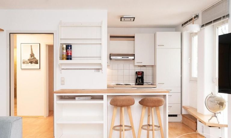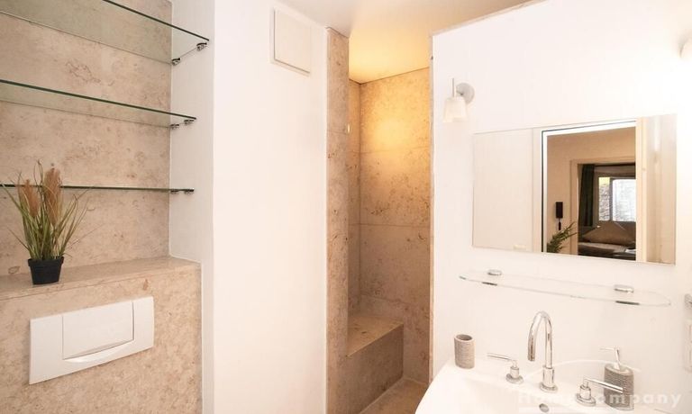 Das helle und luxuriös gestaltete Wohnzimmer ist mit einem Sofa, TV und Essplatz möbliert. Die Wohnung bietet 2 Schlafzimmer: ein Master-Schlafzimmer mit Boxspringbett und Kleiderschrank, sowie ein Gästezimmer mit Bett und Kleiderschrank. Die offenen Küche ist mit allem für den täglichen Gebrauch ausgestattet: Tisch-spülmaschine und verschiedene Küchenutensilien. Ein Essplatz für 4 Personen ist ebenfalls verfügbar. Das Natursteinbad verfügt über eine Dusche. Einzelstellplatz auf Anfrage möglich.