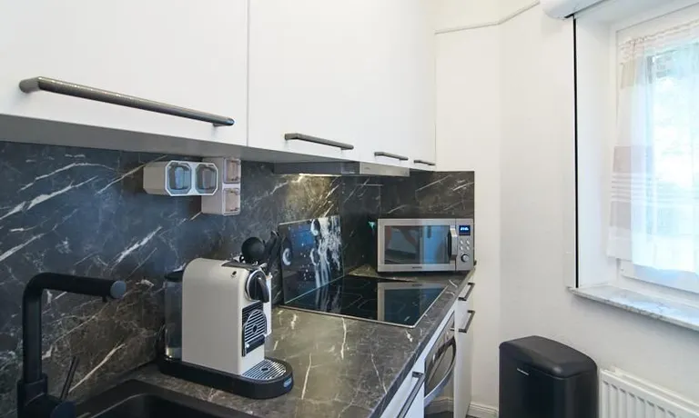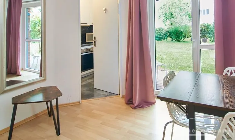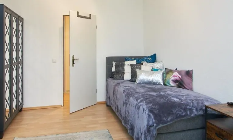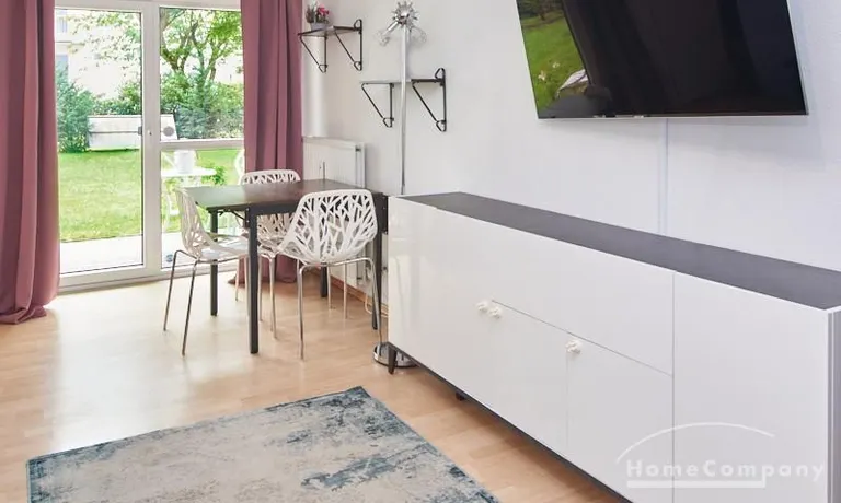 In unmittelbarer Nähe des Stadtparks und dem Planetarium gelegene, in 2022 komplett eingerichtete Wohnung mit moderner Raumaufteilung. Der Wohnbereich ist mit einem Loungebereich, großem Samsung TV und Esstisch ausgestattet. Von hier aus gelangt man auf die großzügige überdachte Terrasse mit Blick in den großen, ebenfalls nutzbaren Gemeinschaftsgarten. Die separate Küche befindet sich direkt an den Wohnbereich angrenzend. Das Schlafzimmer ist mit einem 1,60m breiten Bett und einem weiteren Fernseher ausgestattet. Ein Homeoffice-Bereich steht zur Verfügung, schnelles Internet (1000Mbit Kabel) ist eingerichtet. Die Wohnung bietet viel Wohnkomfort und ist optimal für eine Einzelperson oder ein Paar. Münzwaschmaschine und Münztrockner befinden sich im Keller des Hauses.