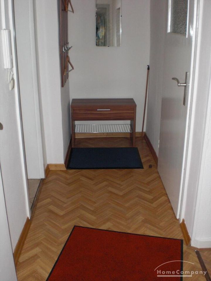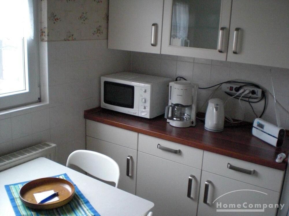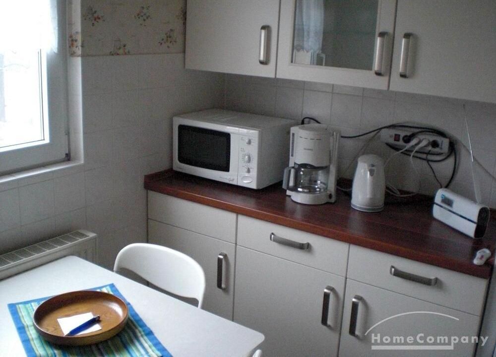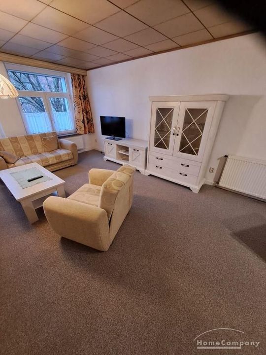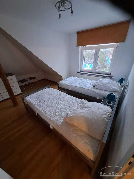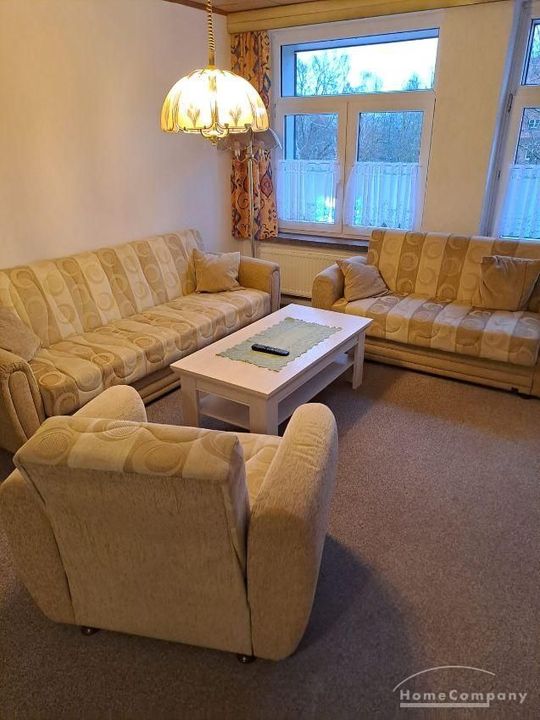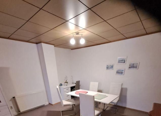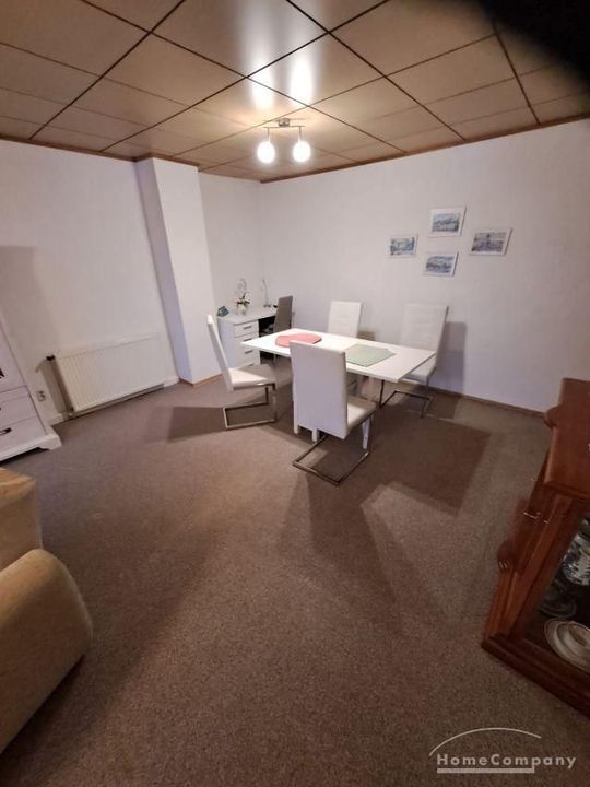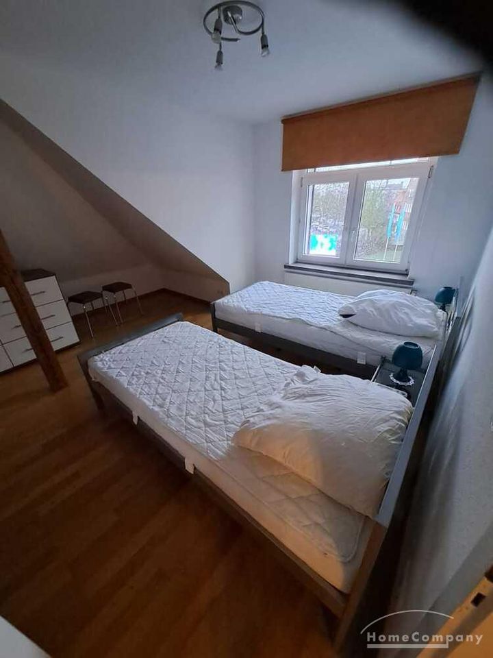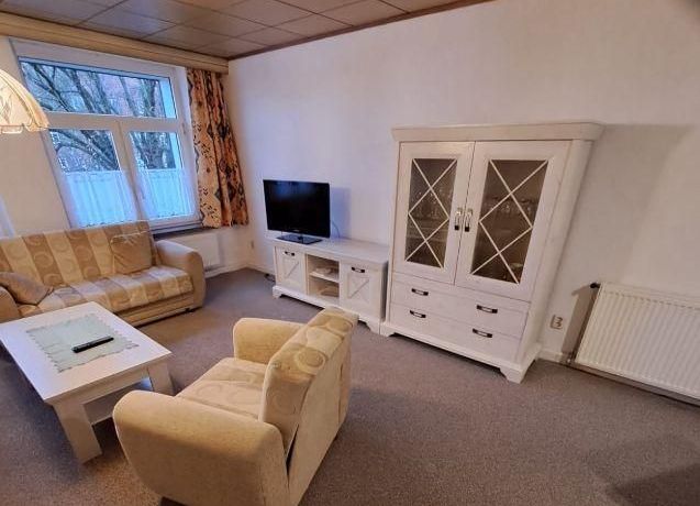 Wohnung im DG eines Mehrfamilienhauses, großes Wohnzimmer mit TV, ausziehbarer Couch, Esstisch und Stühle, Schlafzimmer mit 2 Betten, Küche mit moderner EBK-komplett ausgestattet, DU/WC, kleine Abstell- kammer, Telefonanschluss vorh.-selbst anmelden, ca.5 min vom Bahnhof