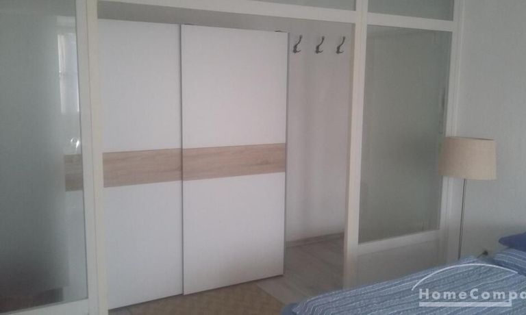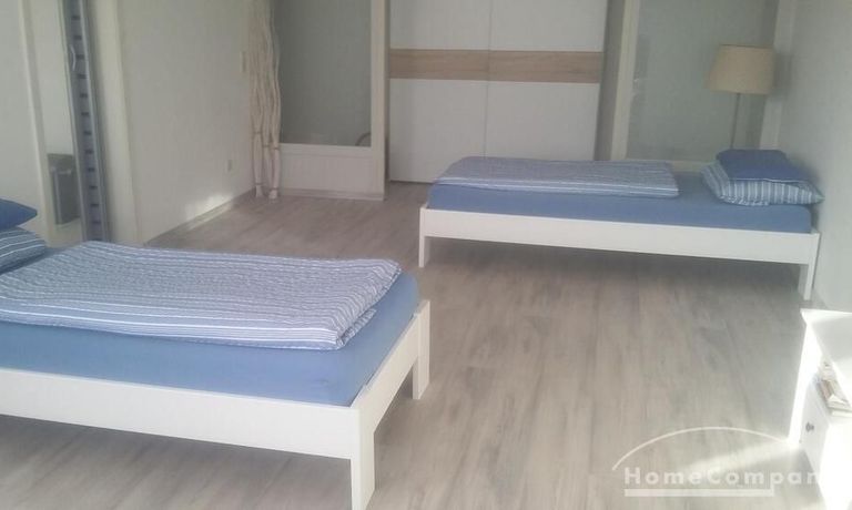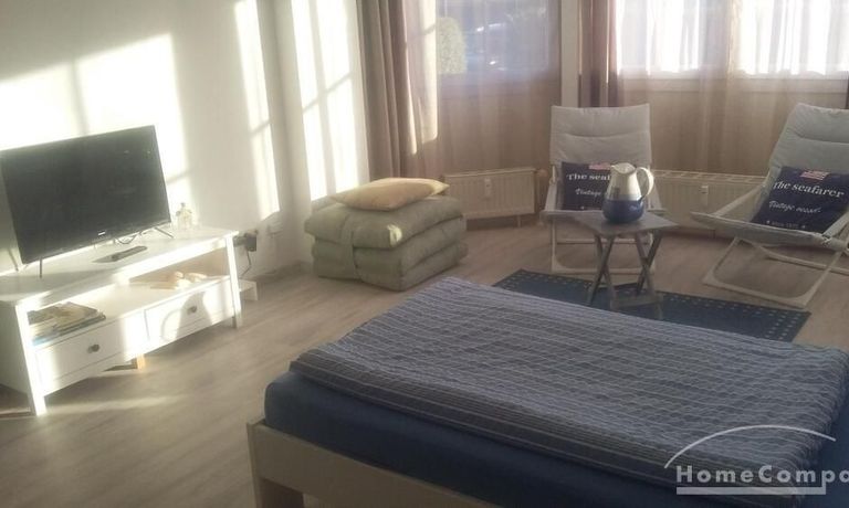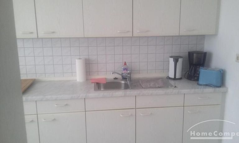 Wohnung im Erdgeschoss eines Mehrfamilienhauses mit kleiner TERASSE, Flur mit Kleiderschrank, Wohn-Schlafraum mit 2 Einzelnen Betten, TV, WLAN vorhanden, Küche mit Kühlschrank, Spüle, Herd mit Backofen, Bad mit Wanne und WASCHMASCHINE, EIGENER Parkplatz auf dem öffentlichen Hof – bei 2 Personen € 685,00 Miete pro Monat!!!
