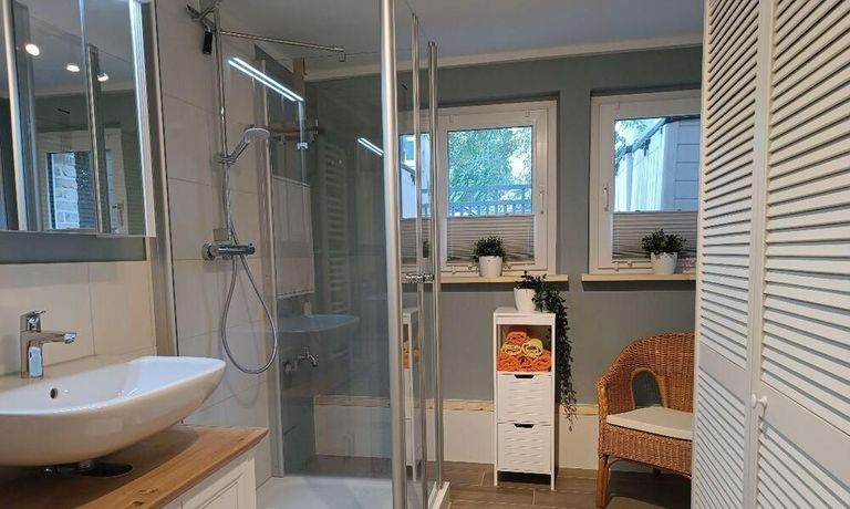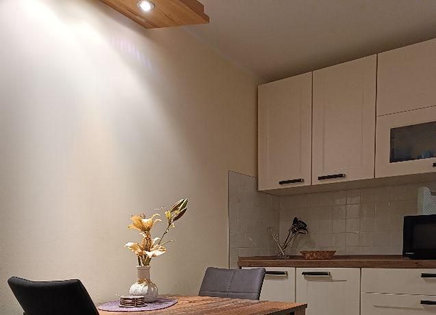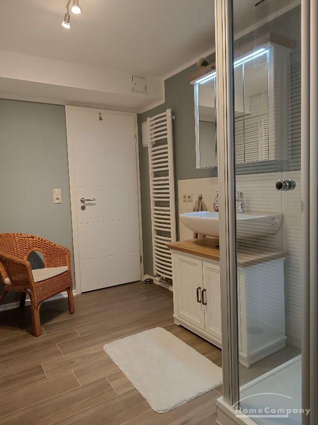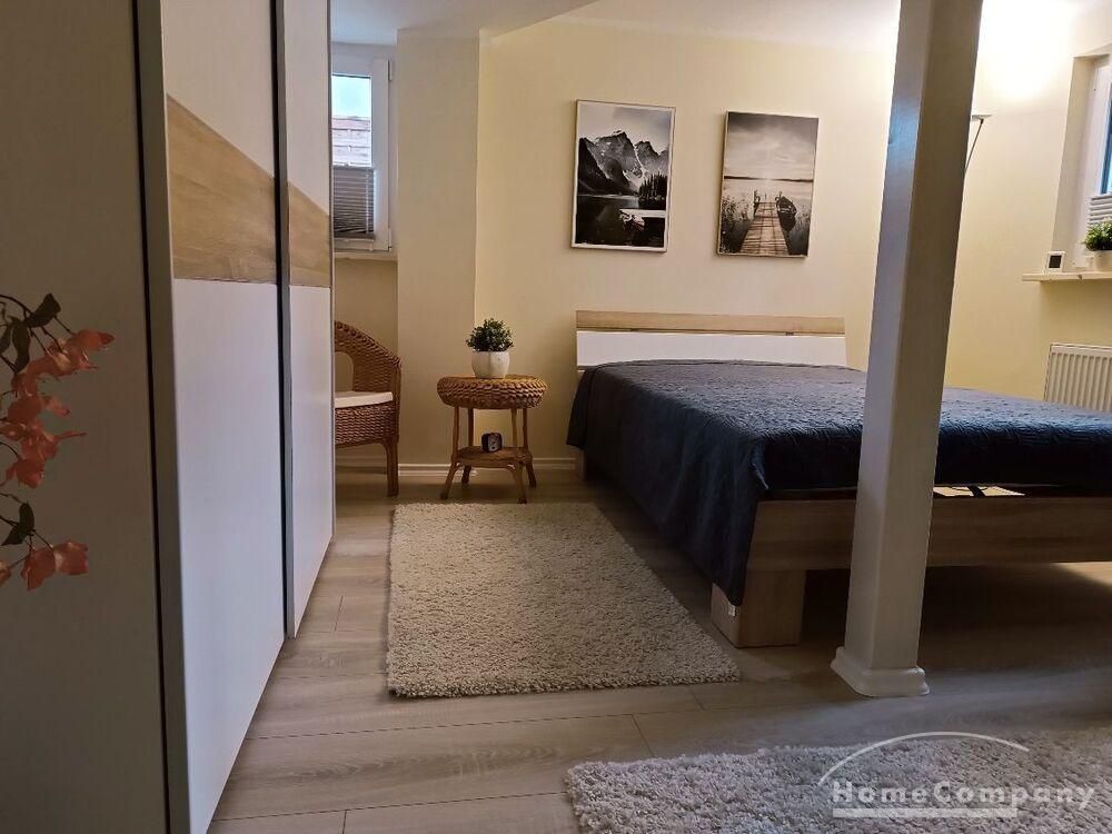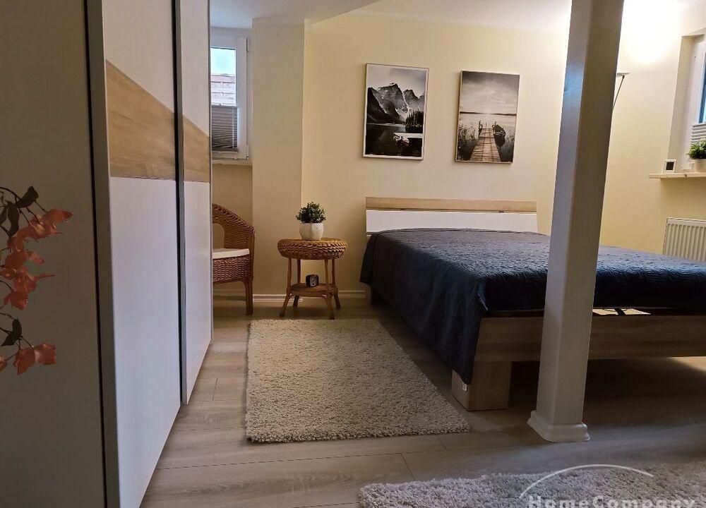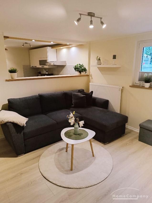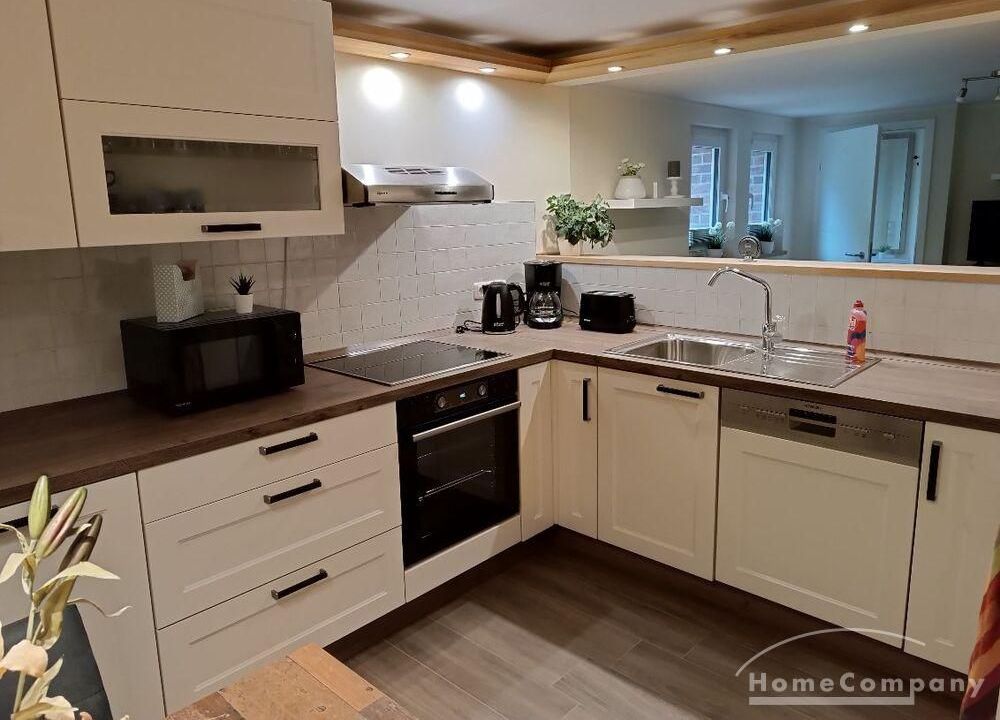 Wohnung im Souterrain eines Stadthauses, kleiner Flur, Wohnraum mit Couch, TV, moderne Küchenecke mit Geschirrspüler, Herd mit Backofen, Esstisch und 2 Stühle,Schlafraum mit Doppelbett, DU/WC, NICHTRAUCHER, WLAN u. Waschmaschine vorhanden,Parkplatz vorm Haus an der Straße