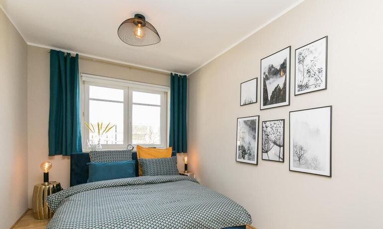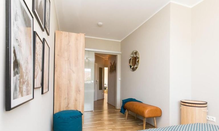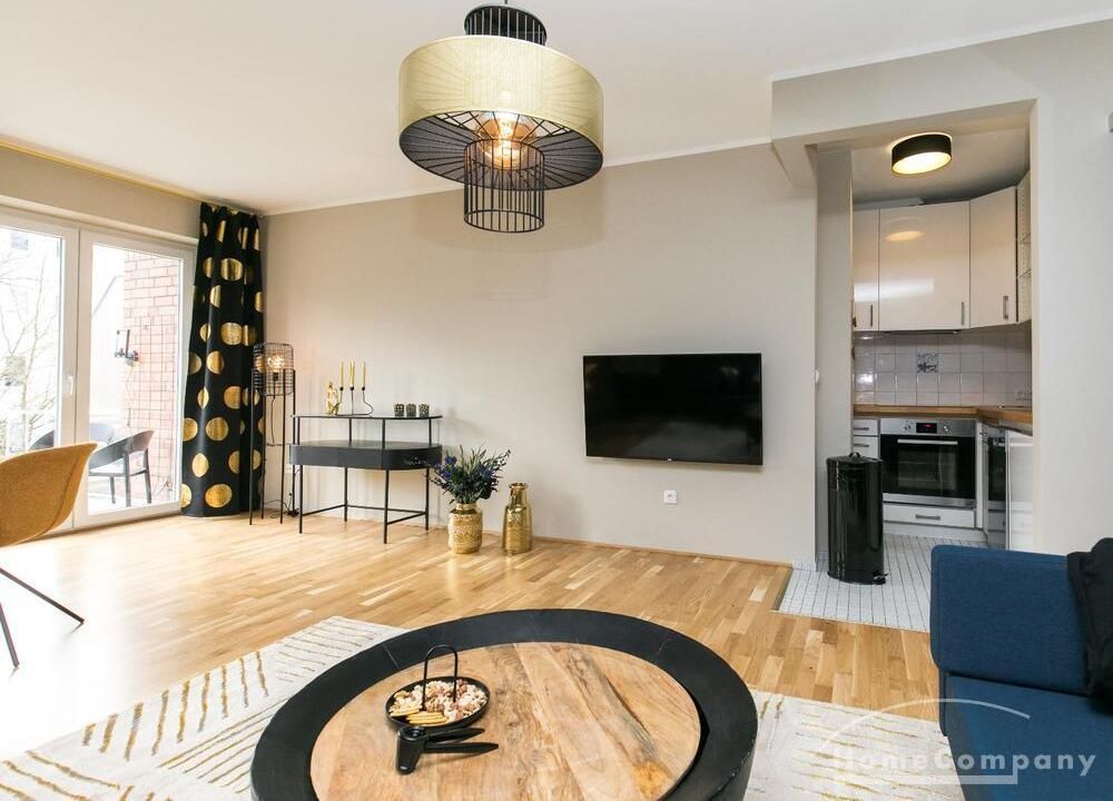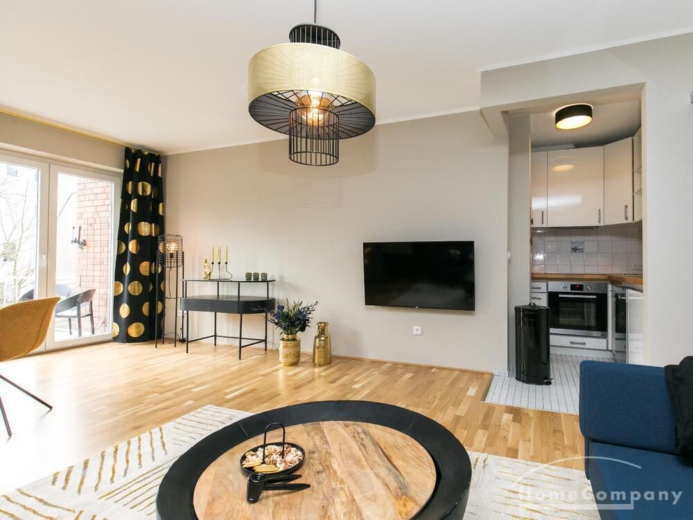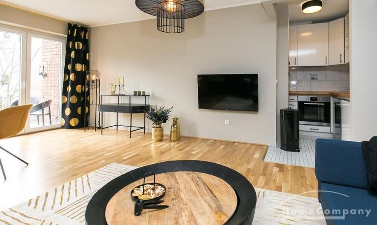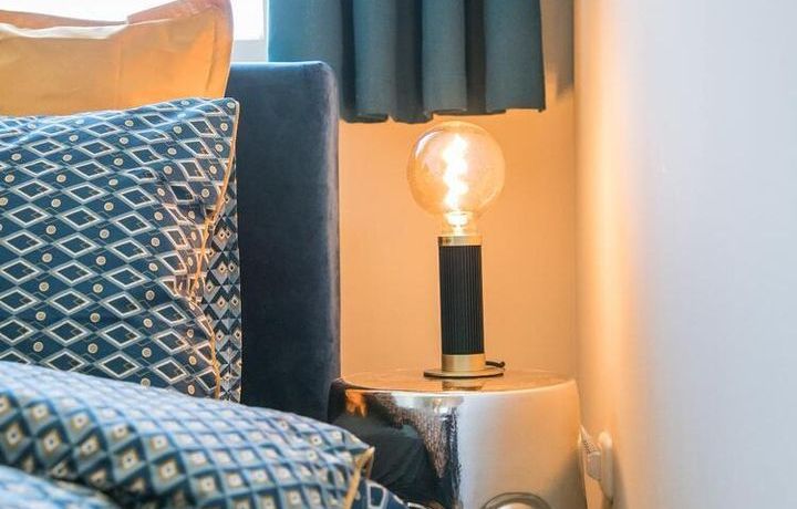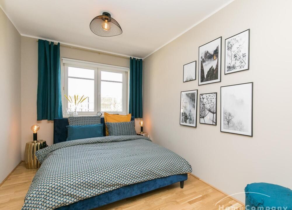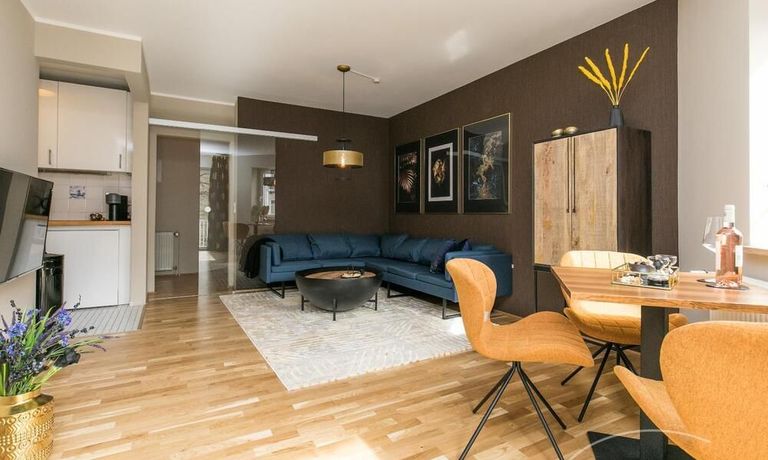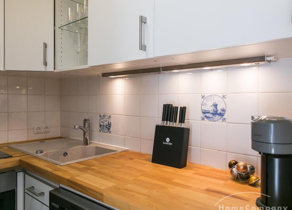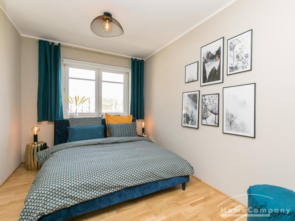 Im Herzen von Hamburg Ottensen und fußläufig zur Elbe gelegene voll möblierte Businesswohnung mit ruhigem Balkon. Die Wände sind in edlem beigegrau „Drop Cloth“ von Farrow & Ball gehalten. Das schöne Eichenparkett und warme Goldtöne, kombiniert mit edlem Blau und Schwarz runden das Ambiente ab. Herzstück des Wohnzimmers ist das große Sofa und der 90 cm große, besondere Couchtisch aus Eisen und Mangoholz. Die schwarz-goldene Hängelampe ist ein weiterer echter Hingucker. Das Highboard aus edlem Mangoholz ist ein außergewöhnliches Modell für gehobene Wohnansprüche. Die geräumige Innenausstattung mit fünf Fächern bietet obendrein viel Platz. Das lässige Konsolen-Sideboard in einem coolen Look ist aus Stahl gefertigt, hat eine Glasplatte und überzeugt durch außergewöhnliches Design.