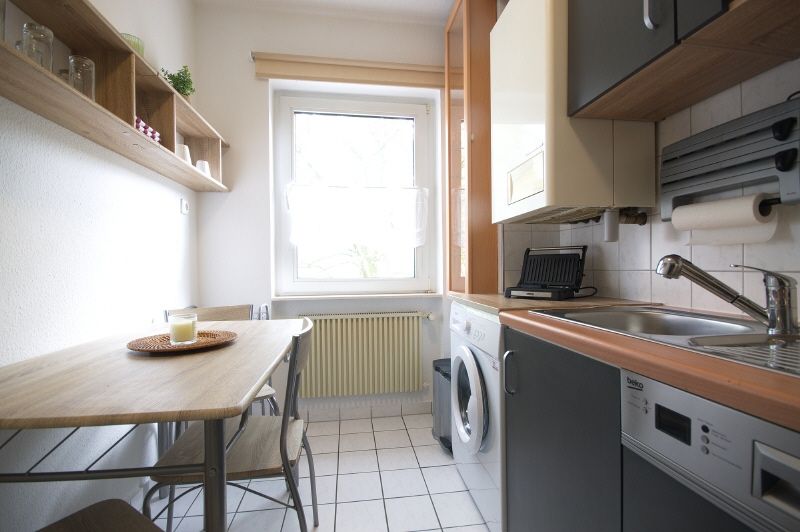 Neuwertige, moderne Möblierung, ansprechend gestaltet. Wohnzimmer mit Schlafsofa, Lowboard und internetfähigem TV sowie Essbereich bis zu 4 Personen. Schlafzimmer mit Doppelbett und Kleiderschrank sowie Standspiegel. Bettwäsche und Handtücher sind vorhanden. Wohnküche mit Esstisch, Ceranherd mit Dunstabzug, Backofen, Spülmaschine, Waschmaschine, Kühl-. Gefrierkombi, Geschirr, Besteck etc. Weiß gefliestes Wannenbad mit Duschvorrichtung, Toilette und Fenster. Internetzugang. Langzeitangebot. Anmietung ab 6 Monaten möglich.