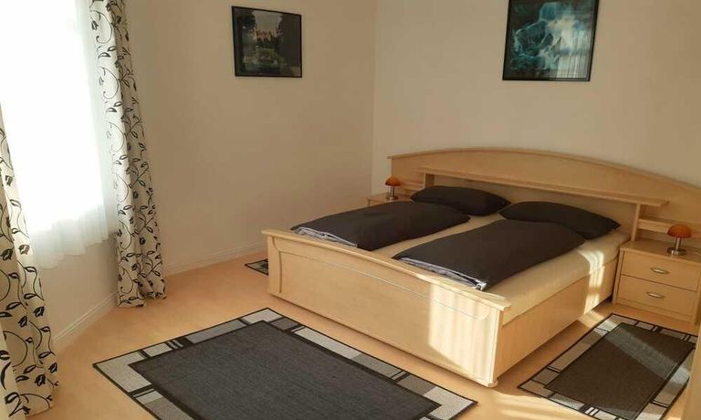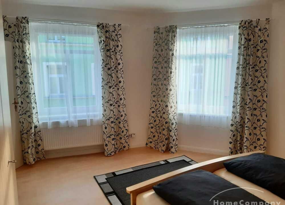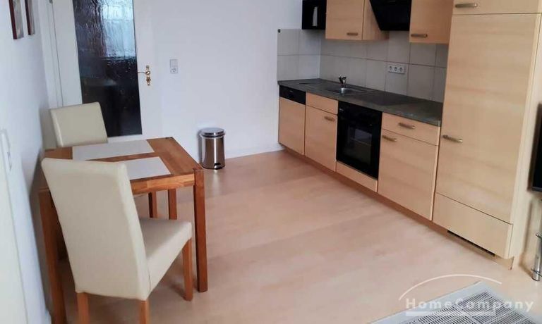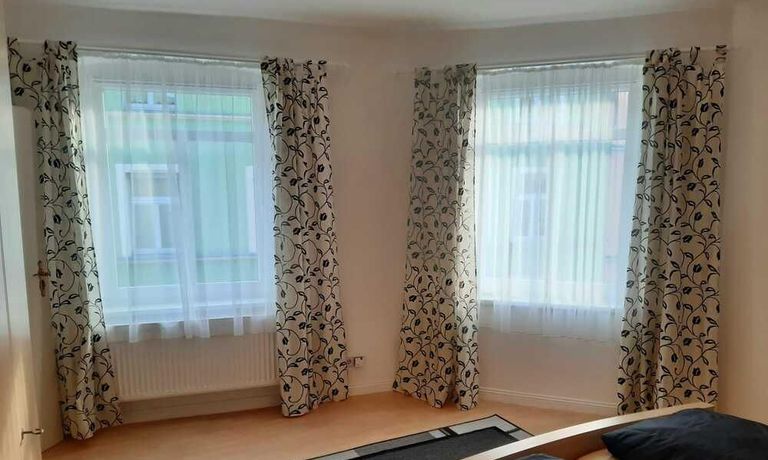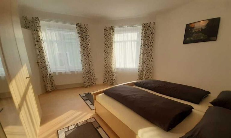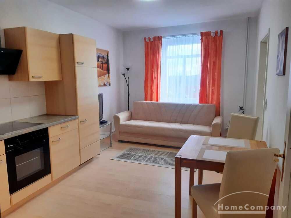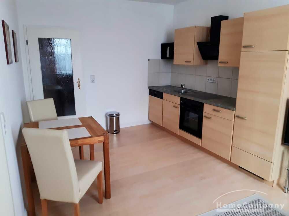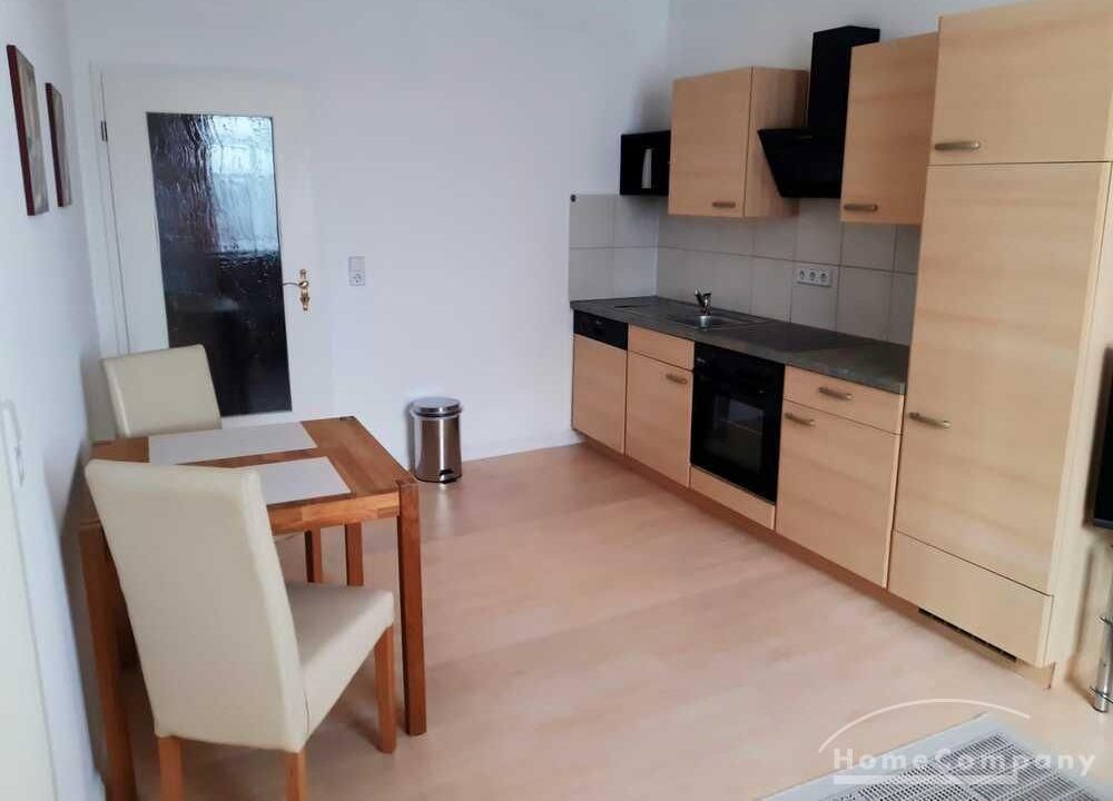 Wohnung in einem Mehrfamilienhaus, Wohnzimmer mit Küchenzeile – Herd mit Backofen, Kühlschrank und Spüle, Esstisch und Stühle, Sitzcouch, TV, WLAN VORHANDEN, Schlafzimmer mit Doppelbett und Kleiderschrank, Bad mit Eckbadewanne und Fenster, Waschmaschine im Keller zur allgemeinen Benutzung – Miete für 2 Pers. pro Monat € 890,00