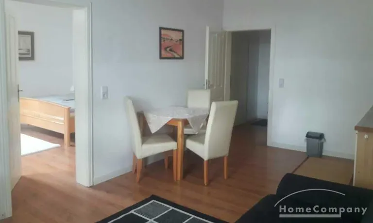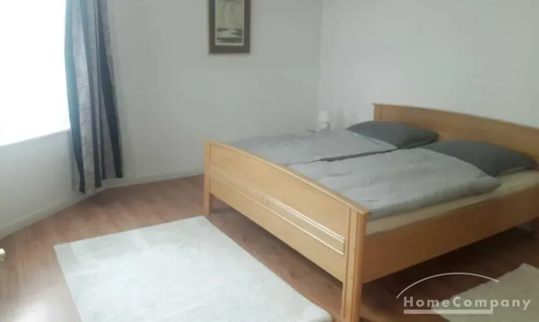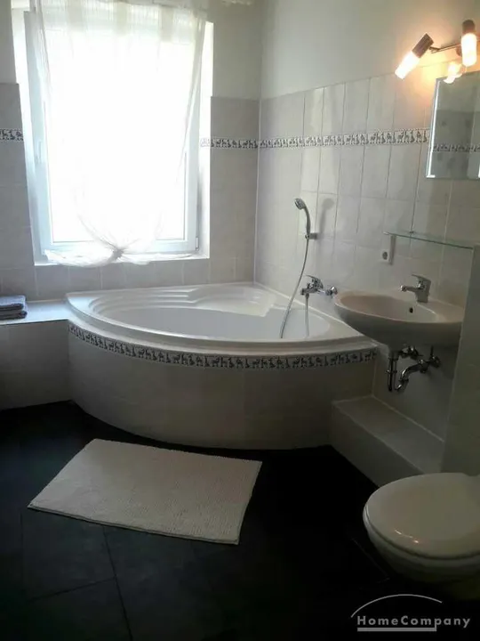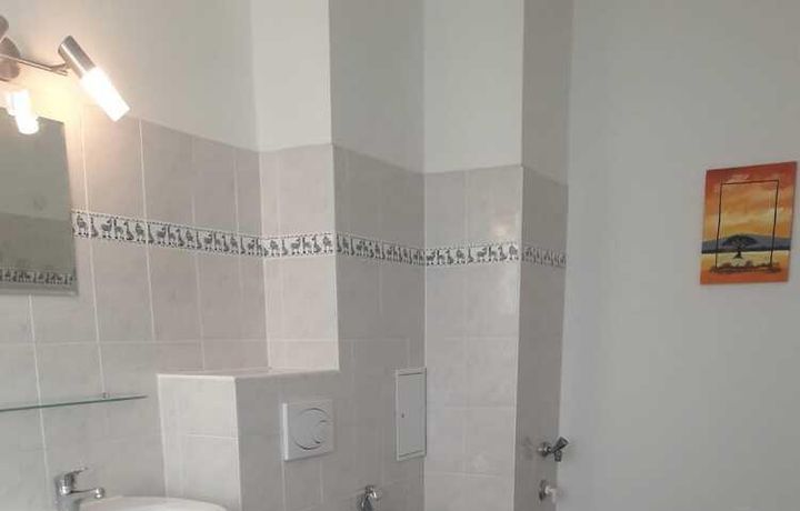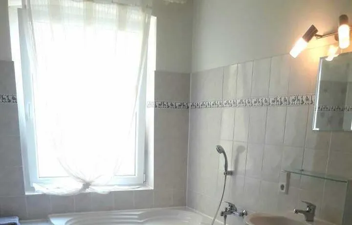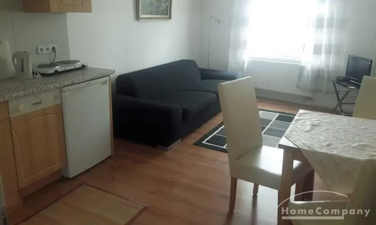 Wohnung in einem Mehrfamilienhaus, Wohnzimmer mit Küchenzeile – 2 Herdplatten, Kühlschrank und Geschirrspüler, Sitzcouch, Tisch, Anrichte und TV, Schlafzimmer mit Doppelbett und Kleiderschrank, großes Bad mit Eckbadewanne und Fenster, WLAN VORHANDEN, Waschmaschine im Keller zur allgemeinen Benutzung, Nahverkehrsanbindung für 2 Pers.pro Monat 890,00