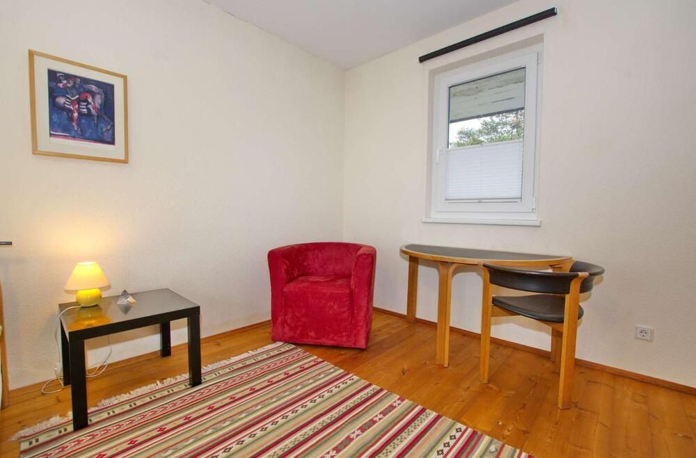 Die Wohnung ist überwiegend mit einem Echtholzboden und Fliesen ausgelegt, es gibt 3 Ausgänge auf die schöne Garten-Terrasse. Das Schlafzimmer ist mit einem Doppelbett, einem geräumigen Kleiderschrank und einem Tisch mit Sessel eingerichtet. Das Wohnzimmer ist hell und freundlich möbliert mit 2 bequemen Sofas, einem Sessel, 2 Beistelltischen und einem Würfelregal mit SAT-TV. Das Wohnzimmer ist durch einen Durchgang mit dem separaten Esszimmer verbunden, von dem aus man in die Küche gelangt. Sie lässt keine Wünsche offen: Ceranfeld mit Backofen und Dunstabzug, eine Kühl-Gefrierkombination, eine Spülmaschine, eine Mikrowelle und alle erforderlichen Kochutensilien und Geschirr werden hier zur Verfügung gestellt. Außerdem gibt es eine Waschmaschine zur alleinigen Nutzung, Bettwäsche und Handtücher werden gestellt. Das Duschbad ist weiß gefliest und barrierefrei. Der Mietpreis beträgt € 895,00 für eine Person inklusive aller Energie- und Nebenkosten, der Nutzung des DSL-Zugangs, eines 14tägigen Reinigungsservice und der Nutzung eines PKW-Stellplatzes. Der Mietpreis für 2 Personen beträgt € 995,00. Die Endreinigung obliegt dem Vermieter, erfolgt nach Aufwand und wird mit € 35,00 pro Stunde abgerechnet.