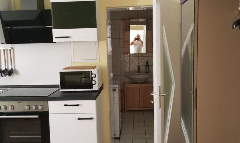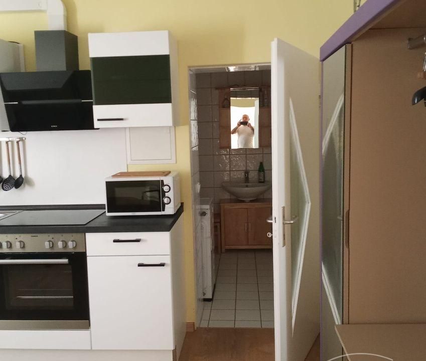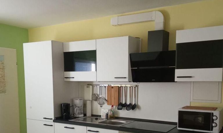 Wohnung im EG eines Einfamilienhauses mit separater Eingang, Wohnraum mit Couch, TV, Küche mit moderner Küchenzeile, Herd mit Backofen und Esstisch mit Stühle, Schlafraum mit Bett und Kleiderschrank, DU/WC mit WASCHMASCHINE, WLAN vorhanden, Parkplatz am Haus