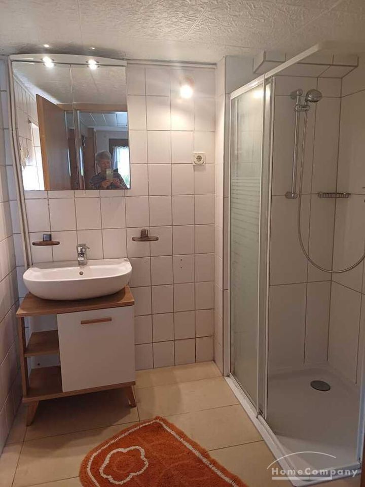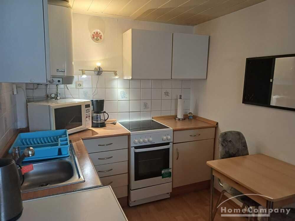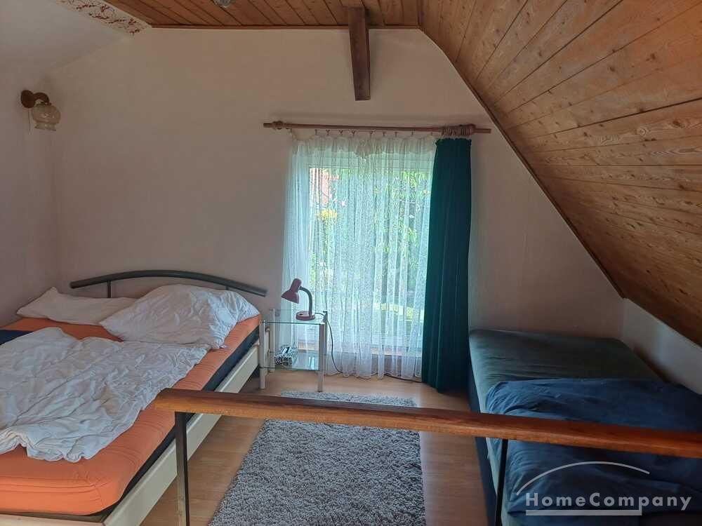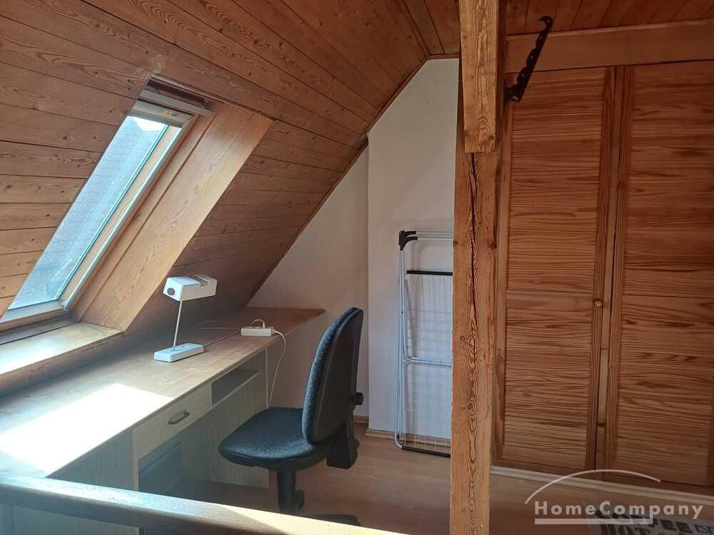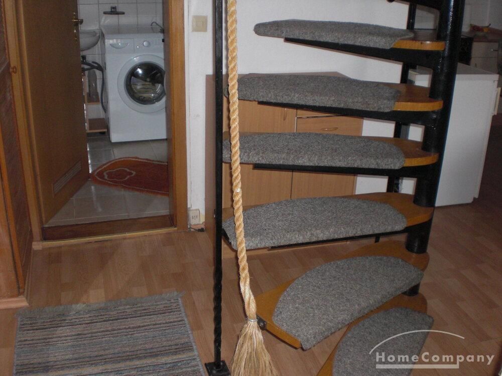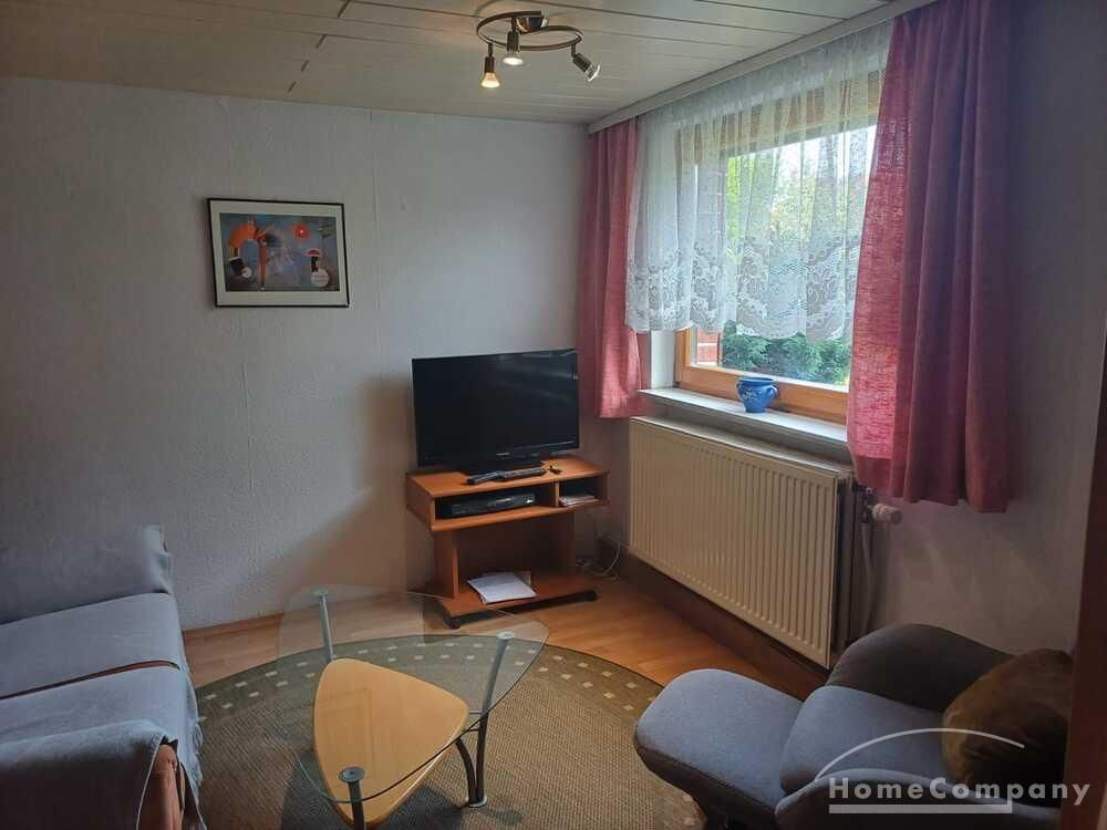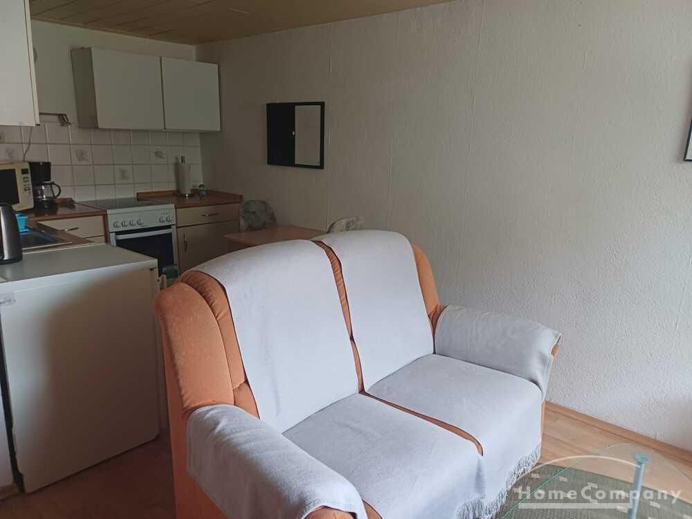 Wohnung über 2 Etagen in einem einzelnen Haus auf dem Hof eines Einfamilienhauses, Wohnraum mit Couch, Sessel und TV, Küchenecke mit Herd, Spüle und Kühlschrank, DU/WC mit Waschmaschine, über eine steile Treppe kommt man ins DG mit Bett u.Schrank, Parkplatz vorhanden – Miete € 470,00 + STROM und WASSER extra!!!!