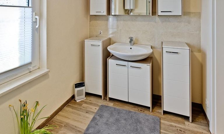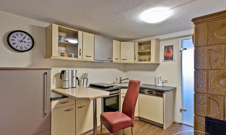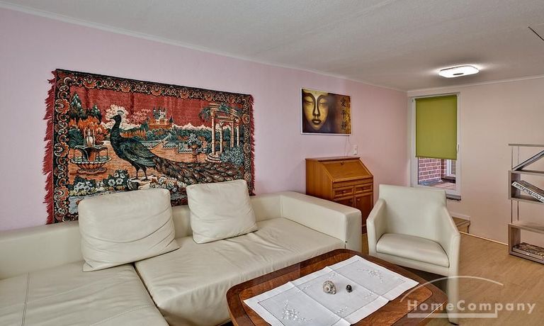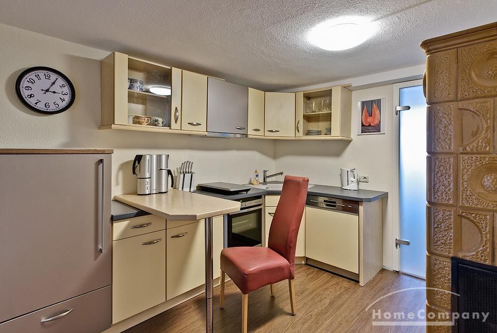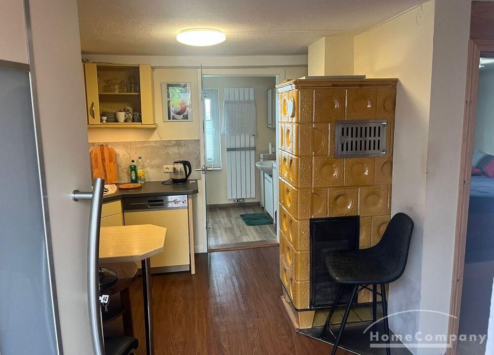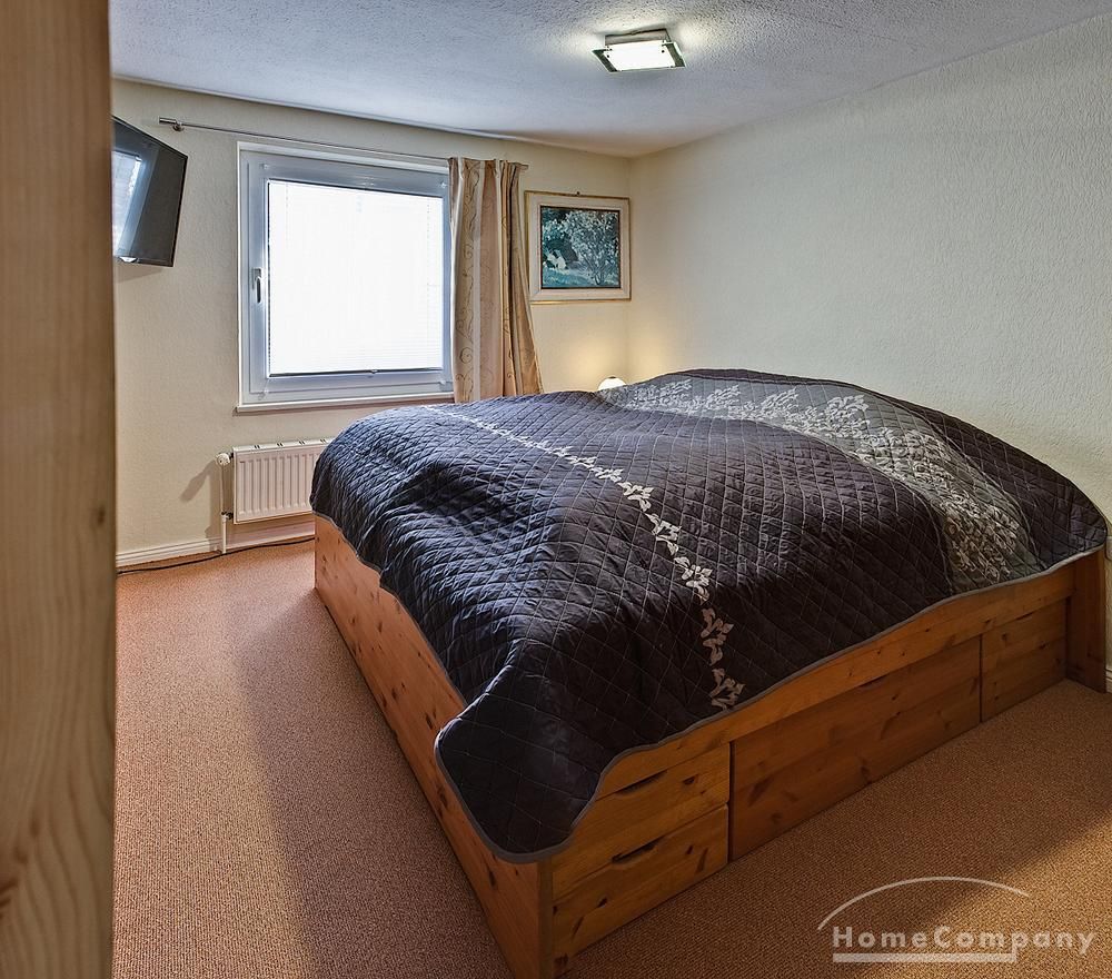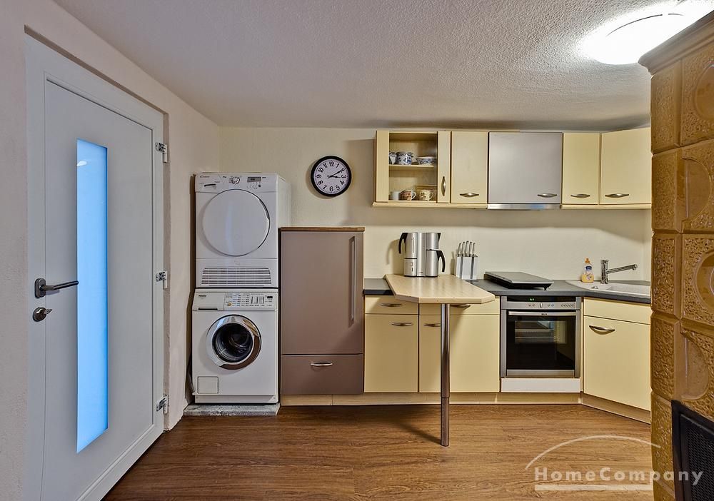 Schöne 2 Zimmer Wohnung ca. 60 m² über 2 Etagen im EG die vollausgestattete Küche mit Geschirrspüler, Waschmaschine und Trockner, Bad mit Dusche und Fenster, Schlafzimmer mit Doppelbett und Schrank, im 1. OG Wohnraum mit Couch und TV, WLAN vorhanden, NICHTRAUCHER, ohne Bettwäsche und Handtücher, Nahverkehrsanbindung – Bushaltestelle vor der Tür