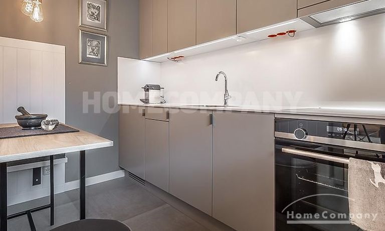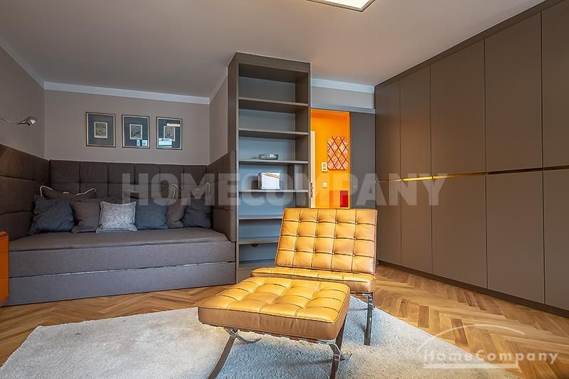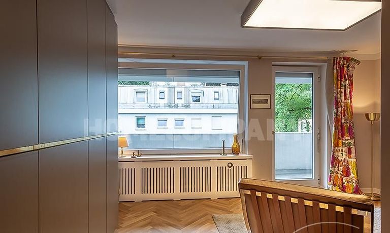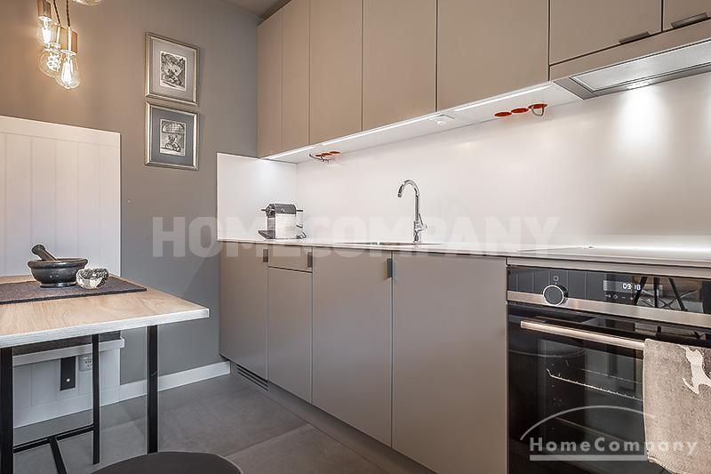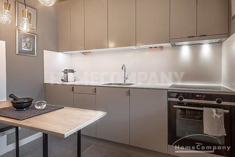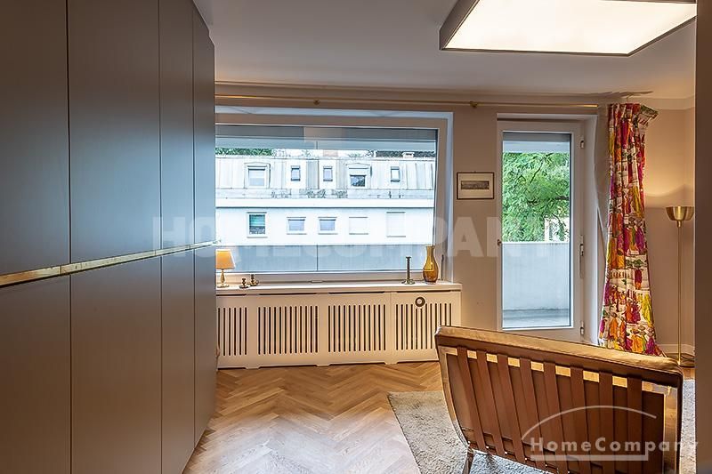 Wunderschönes, modern möbliertes 1-Zimmer-Apartment mit Balkon in Bogenhausen. 1. OG mit Lift. Der Wohn/Schlafbereich ist mit hochwertigen Designer-Möbeln ausgestattet und verfügt dank eines zeitlosen Einbauschranks mit Schiebeelementen über ausreichend Stauraum; von hier Zugang zum großzügigen Balkon. Die neue und in edlem anthrazit gehaltene Wohnküche besticht mit vielen Annehmlichkeiten: sämtliche Geräte/Utensilien für den täglichen Gebrauch (z.B. Geschirrspüler, Espressomaschine etc.) sind vorhanden, außerdem gibt es eine gemütliche Essecke für bis zu vier Personen.