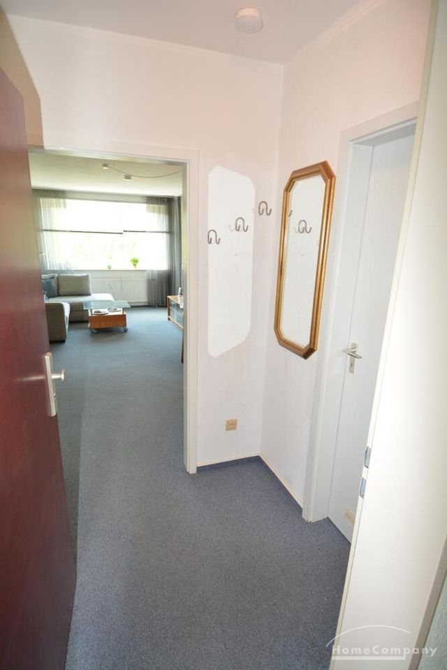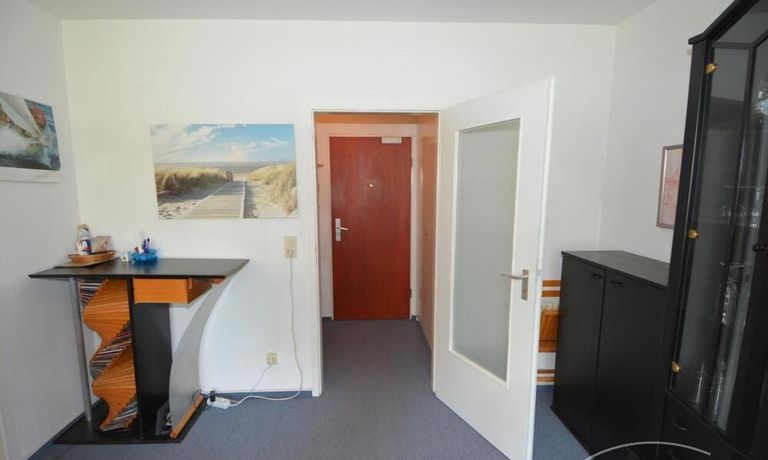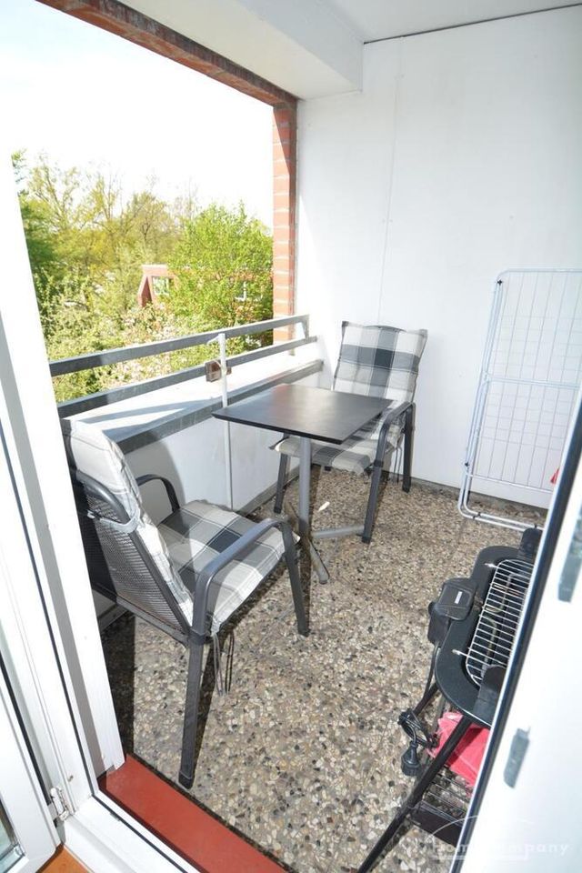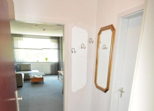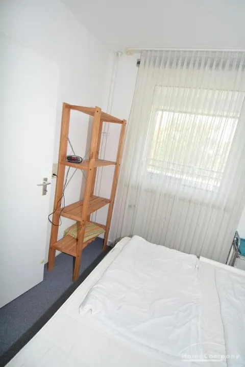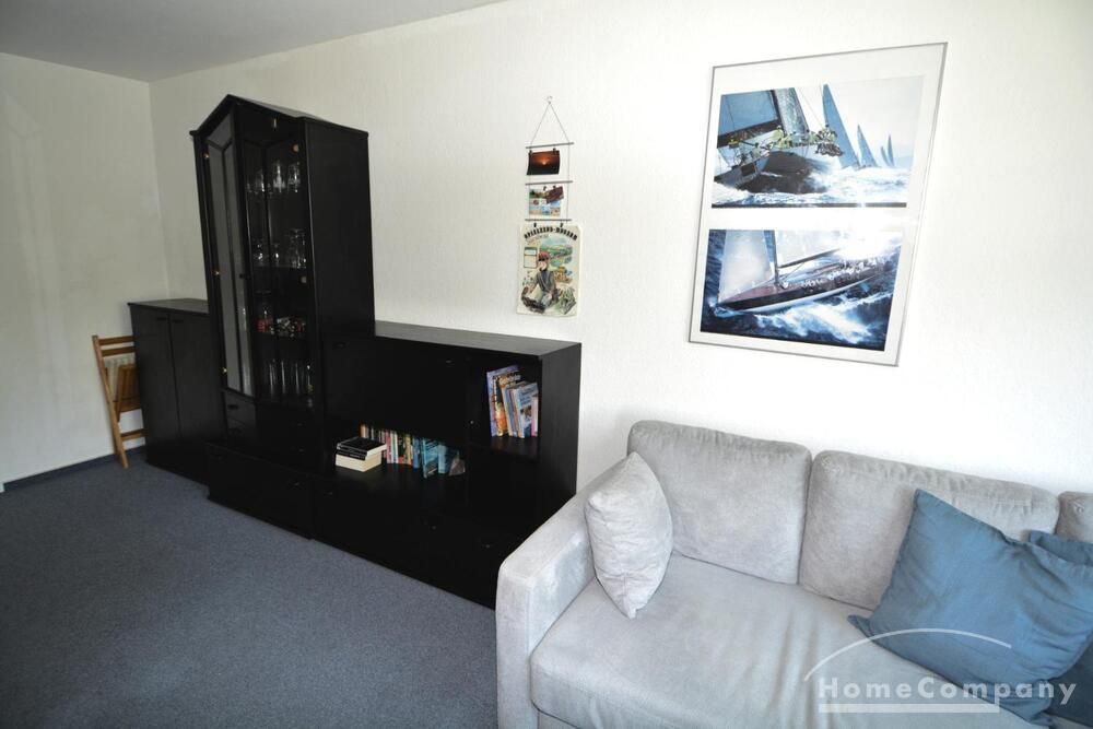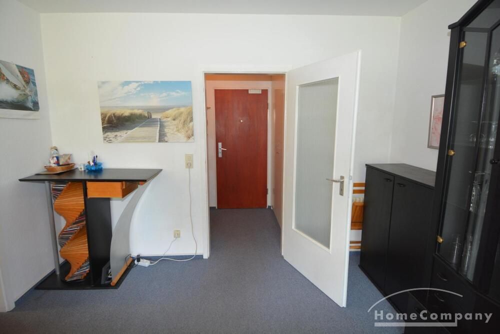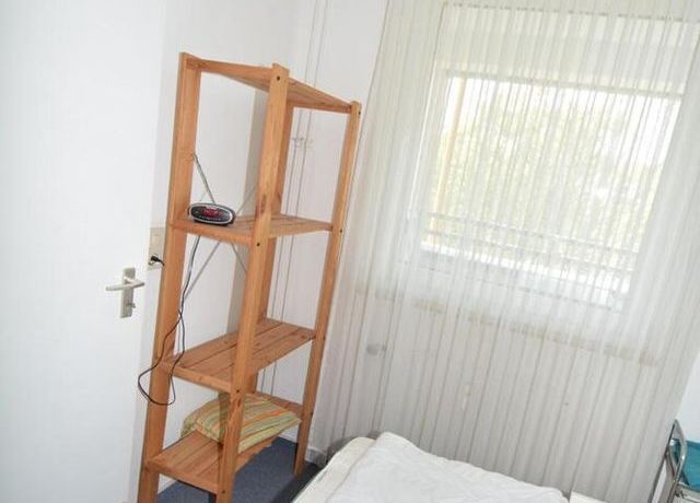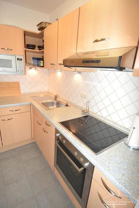 Die Wohnung besteht aus einem hellen Wohnzimmer, einem kleinen Schlafzimmer mit Doppelbett, einem sauberen Bad mit Dusche, einer kleinen separaten Küche und einem sehr hübschen Balkon. Während Wohn- und Schlafzimmer mit Teppichboden ausgestattet sind, befinden sich in Küche und Flur Fliesen. Die Wohnung liegt im 3. OG, ein Aufzug ist vorhanden.