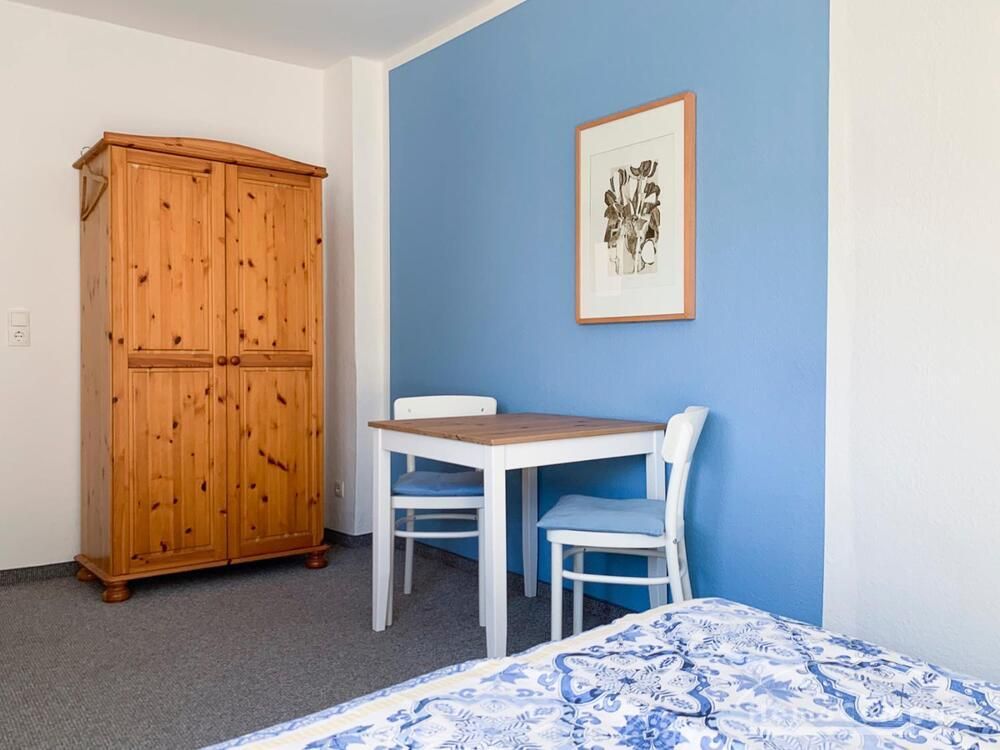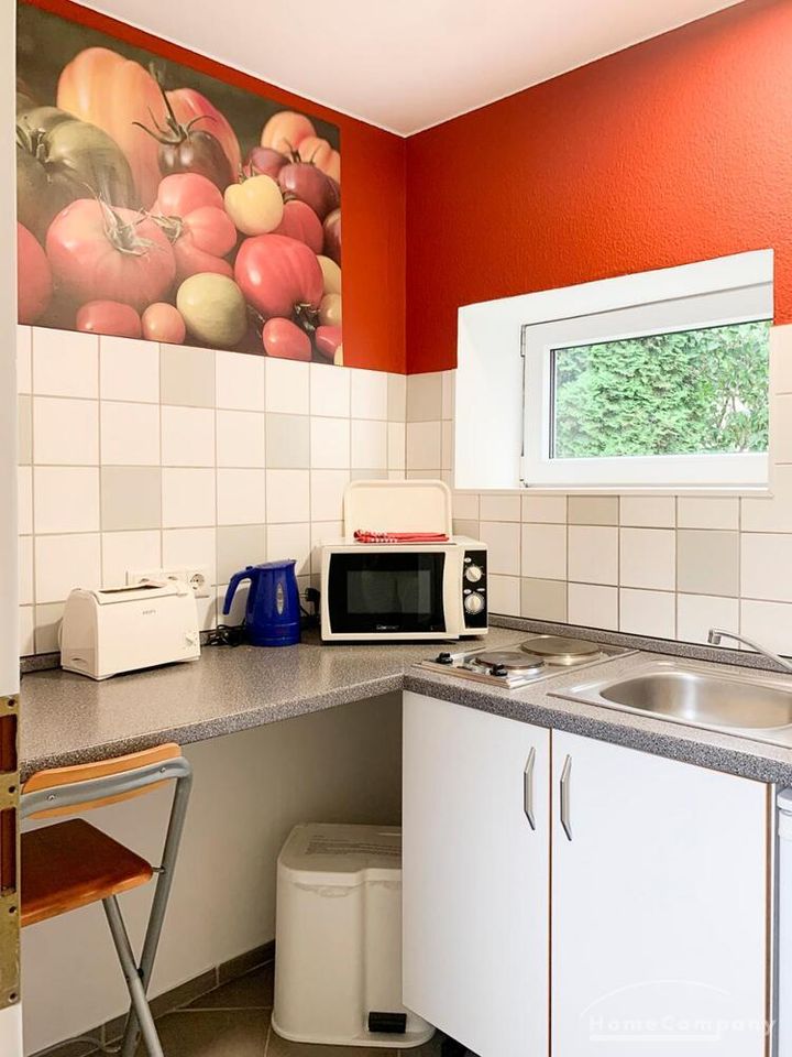 Die Wohnung ist voll möbliert. Schlaf-Wohnraum mit Doppelbett, Tisch, Stühlen (auf Wunsch kann ein Stuhl durch einen Korbsessel ersetzt werden), Regal, Kleiderschrank und TV. Küche mit Sitzplatz für eine Person, 2 Kochplatten, Mikrowelle, Kaffeemaschine, Toaster ,Wasserkocher ,Kühlschrank, sowie sehr gut ausgestattet mit Küchenuntensilien.