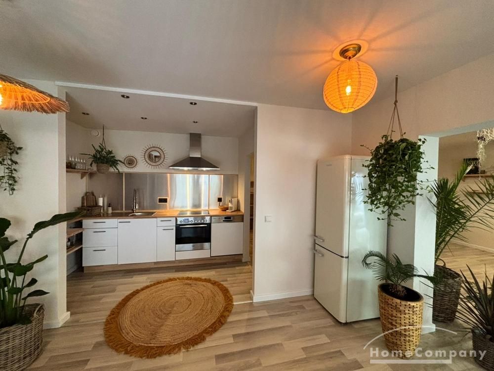 Eine liebevoll gestaltete Schlafnische geht fließend in das Wohnzimmer über und bietet Zugang zum großzügigen Balkon. Auch von Küche und Essbereich aus gelangst du direkt nach draußen. Große Fenster lassen viel Tageslicht herein und verleihen der Wohnung ein luftiges, einladendes Ambiente.