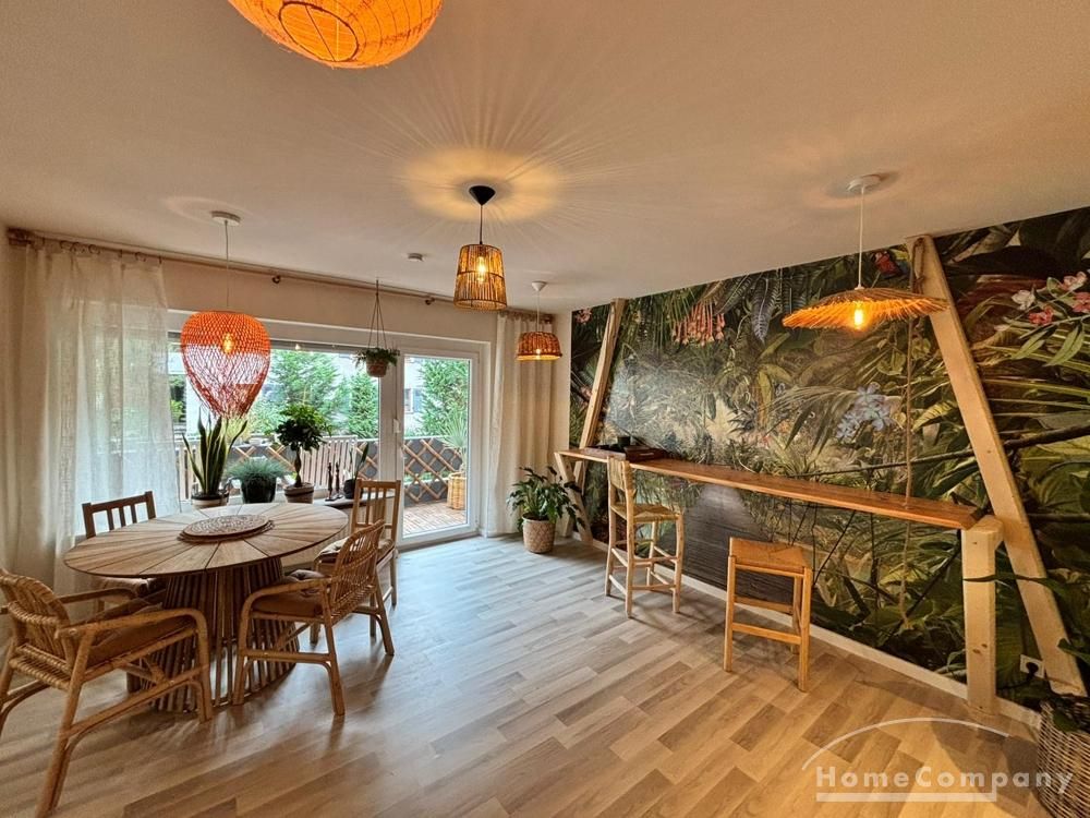 Die helle, rundum begehbare Wohnung bietet Ausblick sowohl auf eine ruhige Straße als auch direkt ins Grüne. Sie liegt eingebettet in ein naturnahes Umfeld mit Reitwegen, Rad- und Wanderstrecken und verfügt dennoch über eine hervorragende Anbindung in die Innenstadt – in nur 10 Minuten bist du dort, egal ob mit Auto oder Bahn.