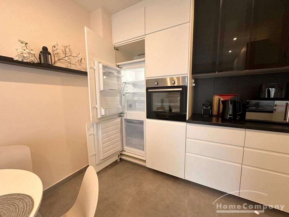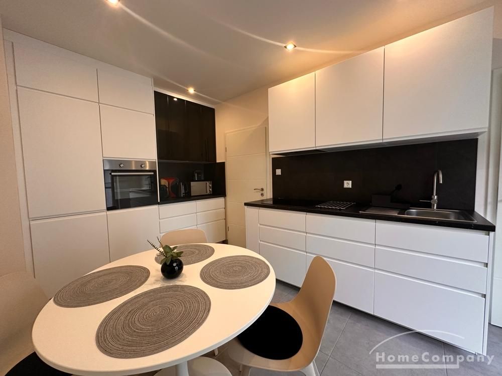 Die Küche ist neu und voll ausgestattet mit einem Glaskeramik 4-Zonen-Kochfeld, Backofen, Kühl- Gefrierkombination sowie Wasserkocher, Geschirr, Gläser, Töpfe, Besteck, Essbereich für 4 Personen und hat Zugang zum Balkon.