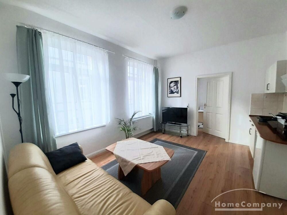 Wohnung in einem Mehrfamilienhaus, Wohnzimmer mit Küchenzeile mit Spüle, Kühlschrank, Herd mit Backofen, Esstisch, Stühle, Couch, TV, Schlafzimmer mit Doppelbett und Kleiderschrank, Bad mit Eckbadewanne und Fester, WLAN VORHANDEN, Waschmaschine im Keller zur allgemeinen Benutzung – Miete für 2 Personen pro Monat € 890,00
